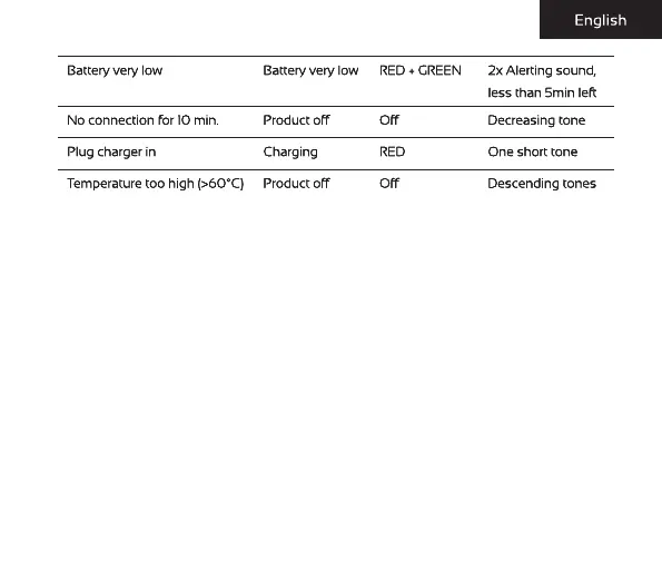 Battery very low Battery very low RED + GREEN 2x Alerting sound,