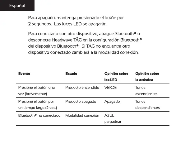 desconecte Headwave TĀG en la conguración Bluetooth®