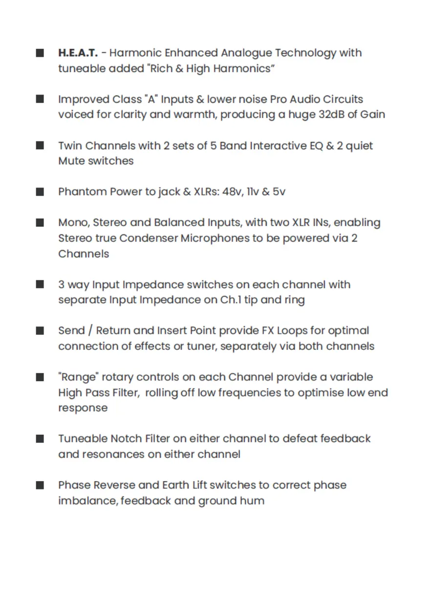 headway EDB-2 VAP - Harmonic Enhanced Analogue Technology (H.E.A.T.); Input and Circuitry Features
