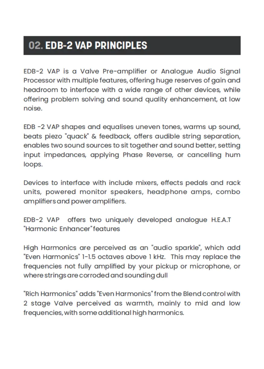 headway EDB-2 VAP - 02. EDB-2 VAP Principles; Gain and Signal Processing; Harmonic Enhancer Features