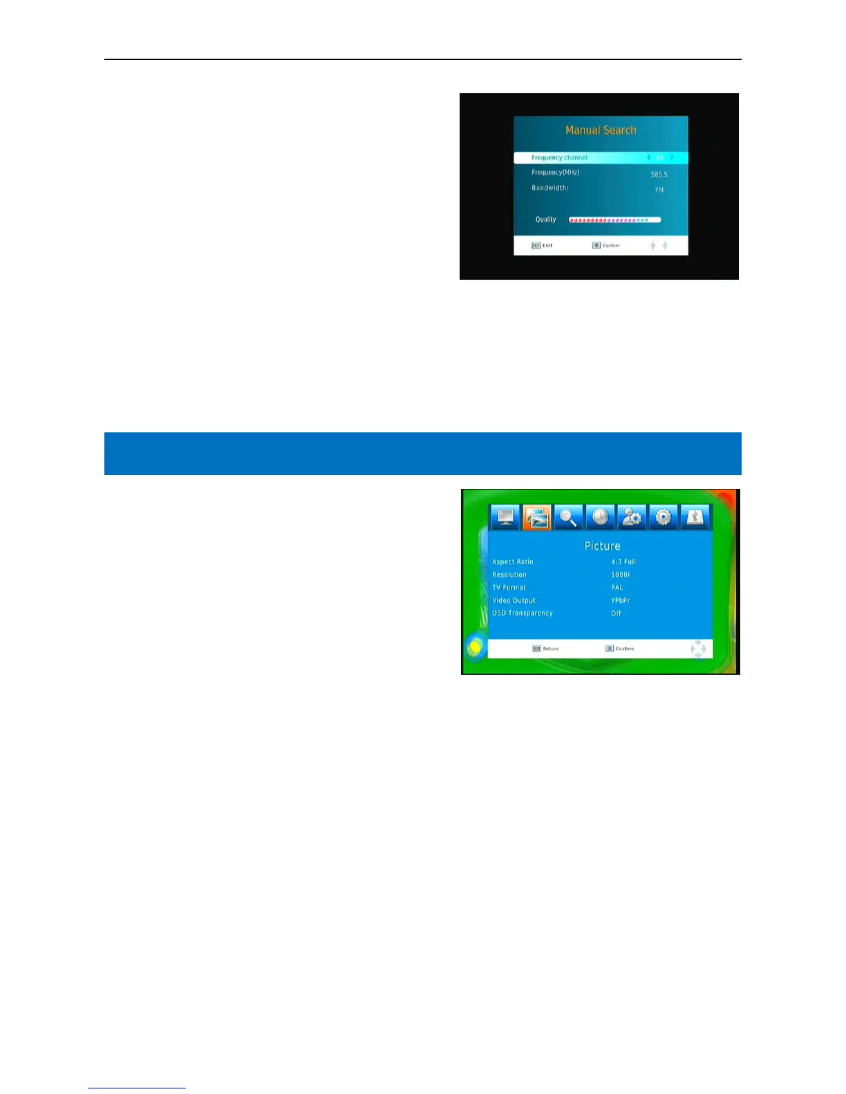 move cursor to [Auto Search]. Press the ‘OK’ key to initiate scan.