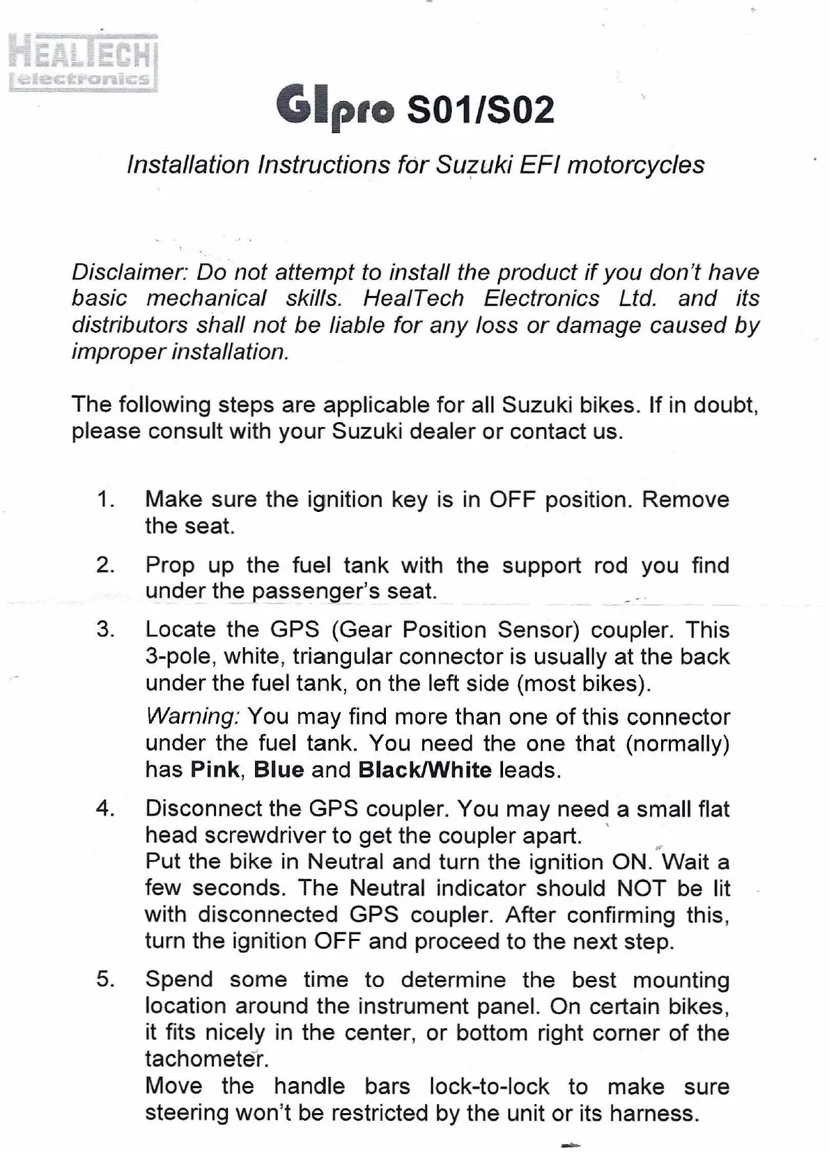 HealTech Electronics GIPRO-S01 - Suzuki EFI Installation Steps
