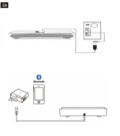 Connection: Plug the USB audio cable into the socket on the rear of the main unit