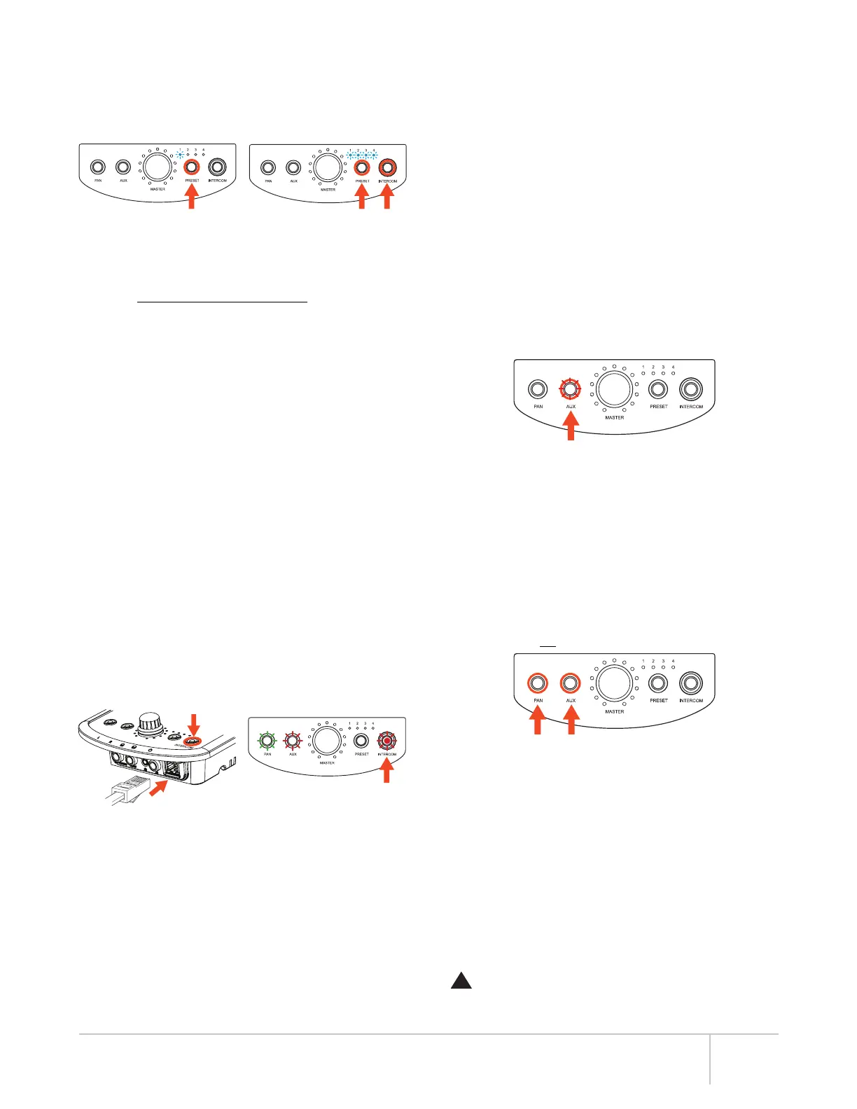 • Press PAN and AUX at same time for 2 seconds until all LEDs