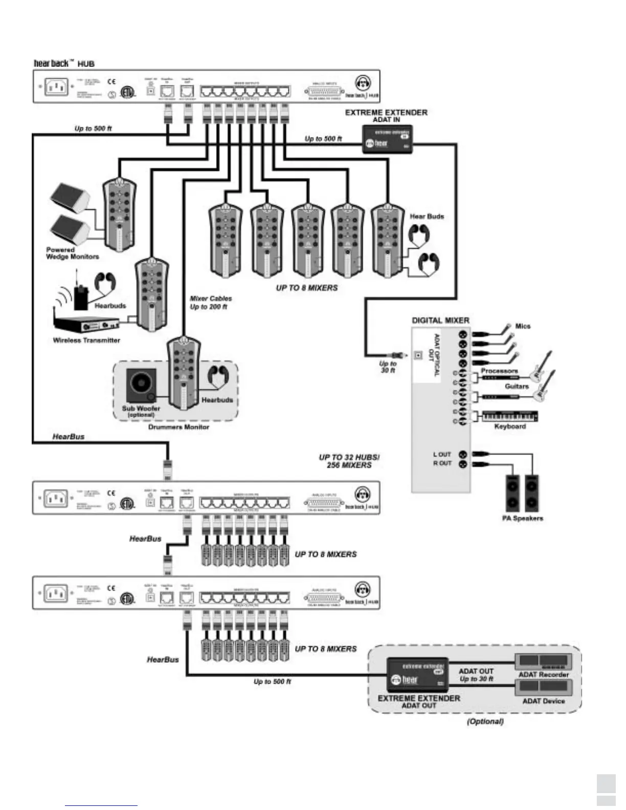 in distance, to the HearBus for transmission of up to 500 feet.