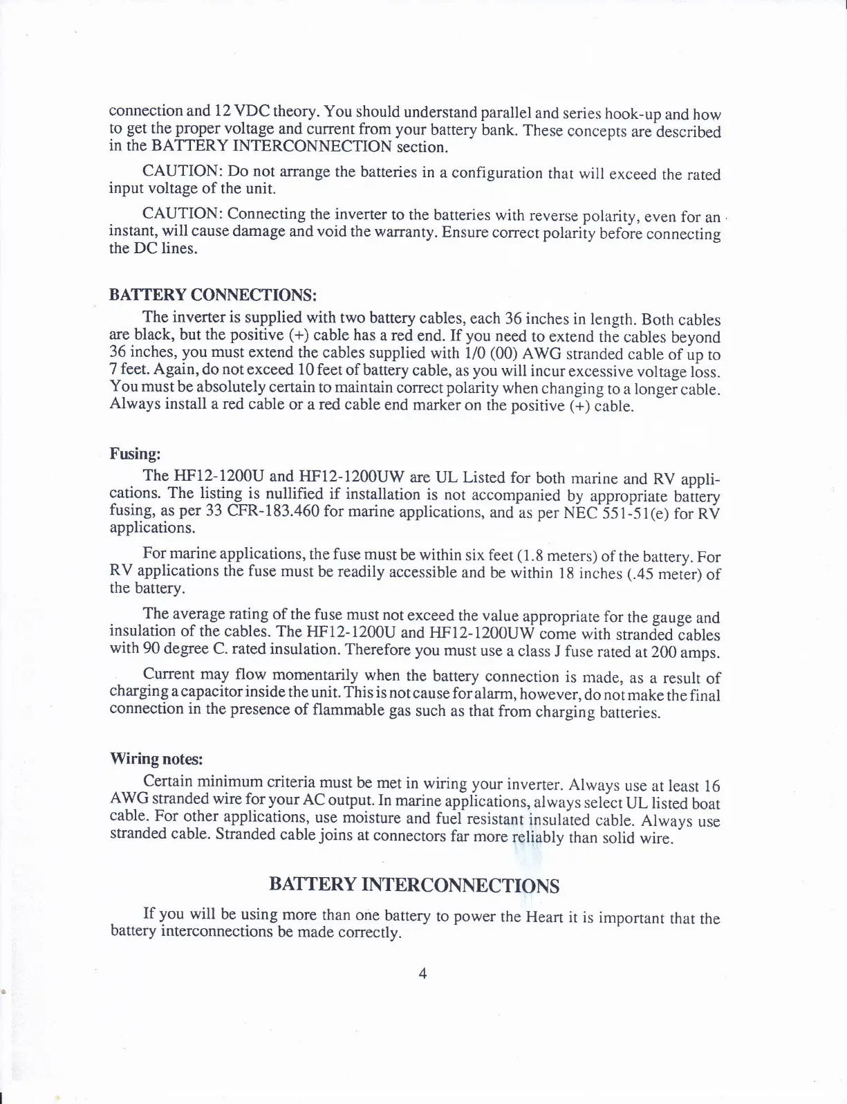 Heart Interface HF12-1200 - Battery Interconnection; Battery Connections
