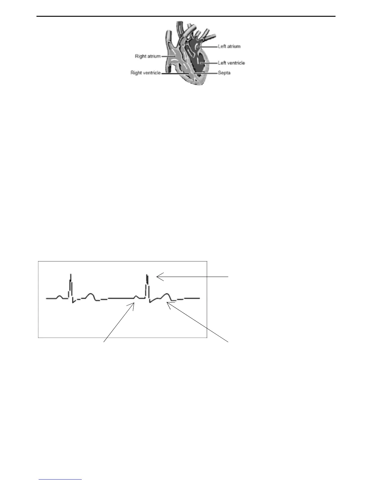 through the heart, causing the heart to beat. An ECG does not measure the movement