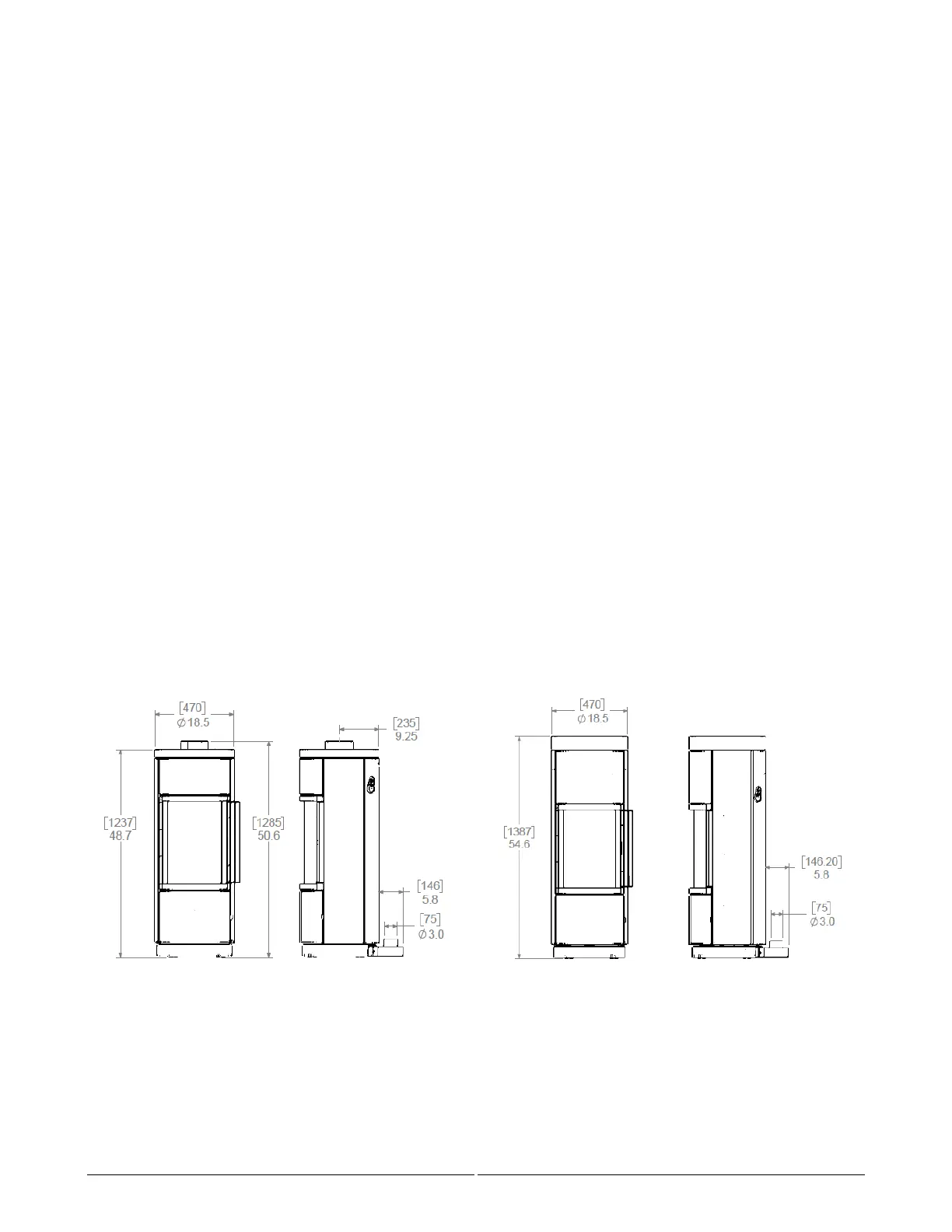 (round flue) 8” x 8” (20 x 20cm) (square flue)