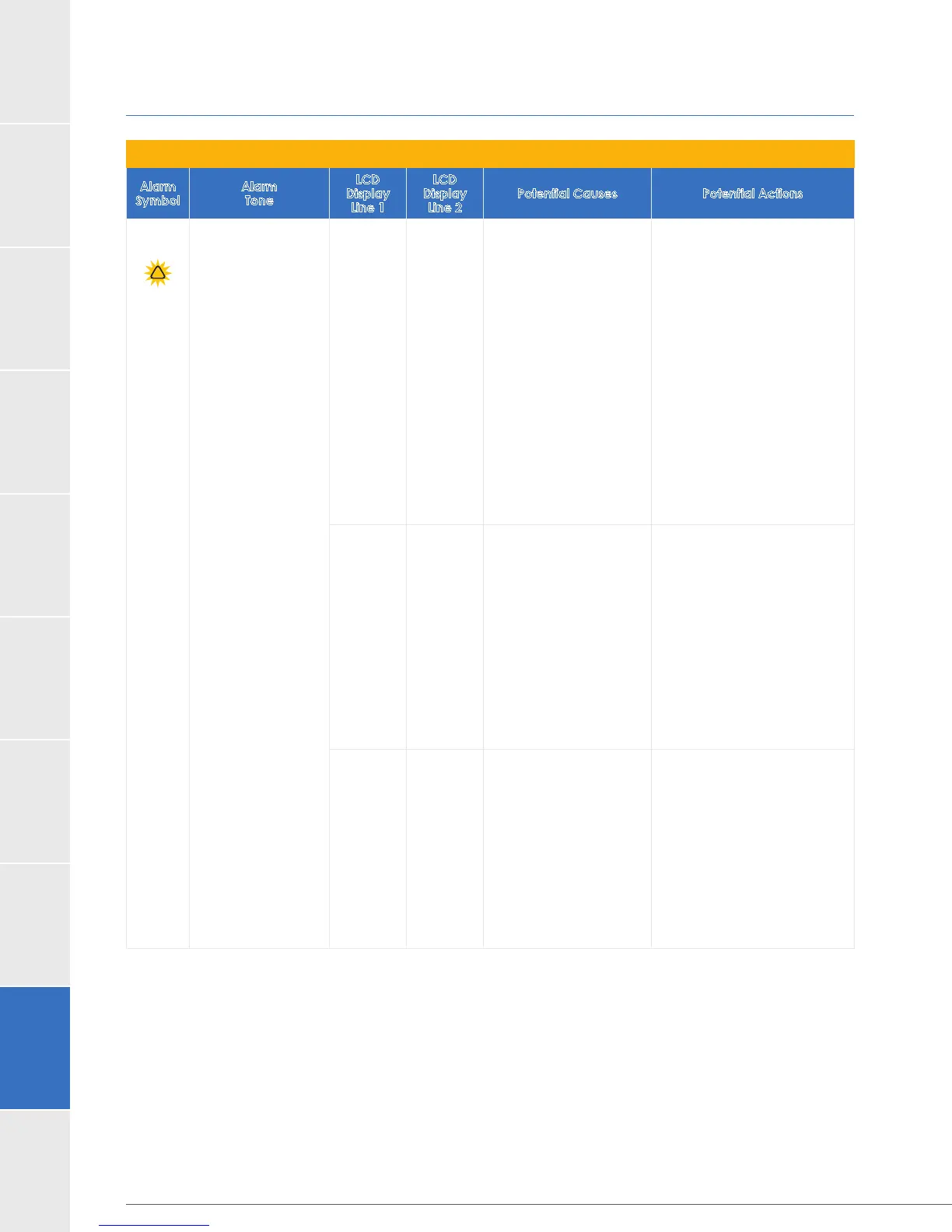 9.0 Quick Reference Guide for Alarms (continued)