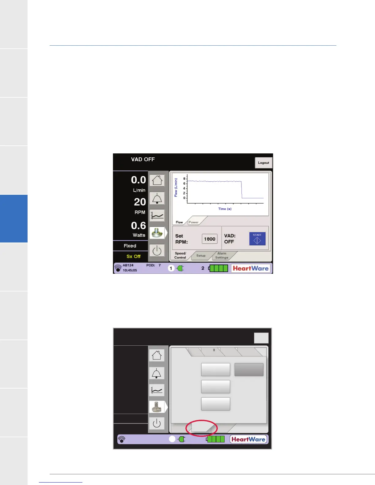 When the Setup tab is pressed, four additional tabs are displayed and include: Patient, VAD,
