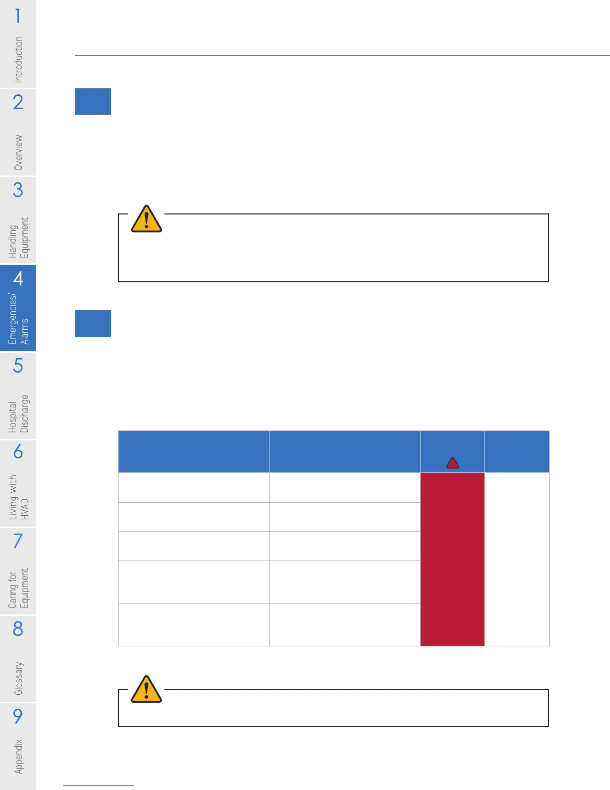 A high alarm demands immediate action for VAD (pump) stoppage, controller failure or
