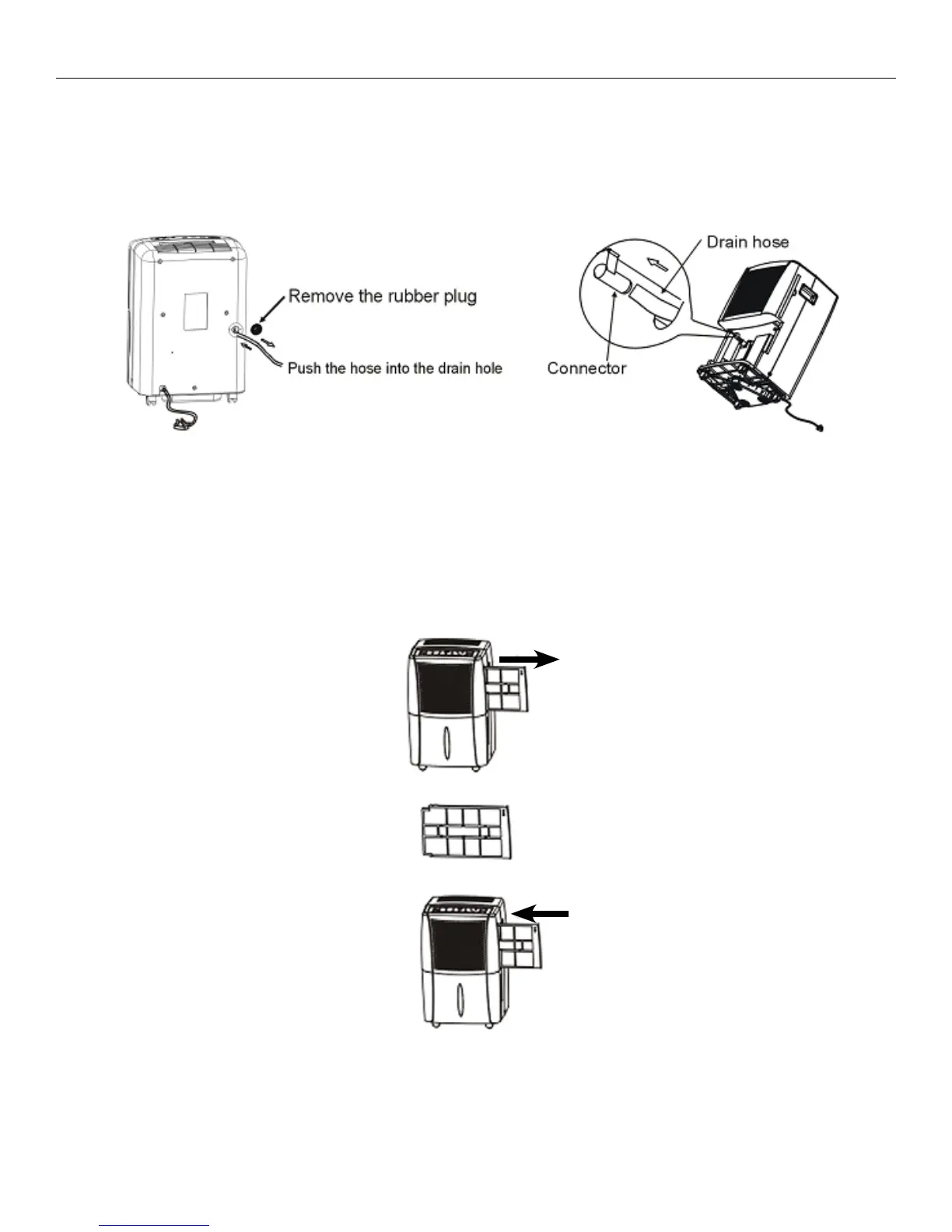 Remove the water tank rst, then push the hose onto the connector located inside of the hole.