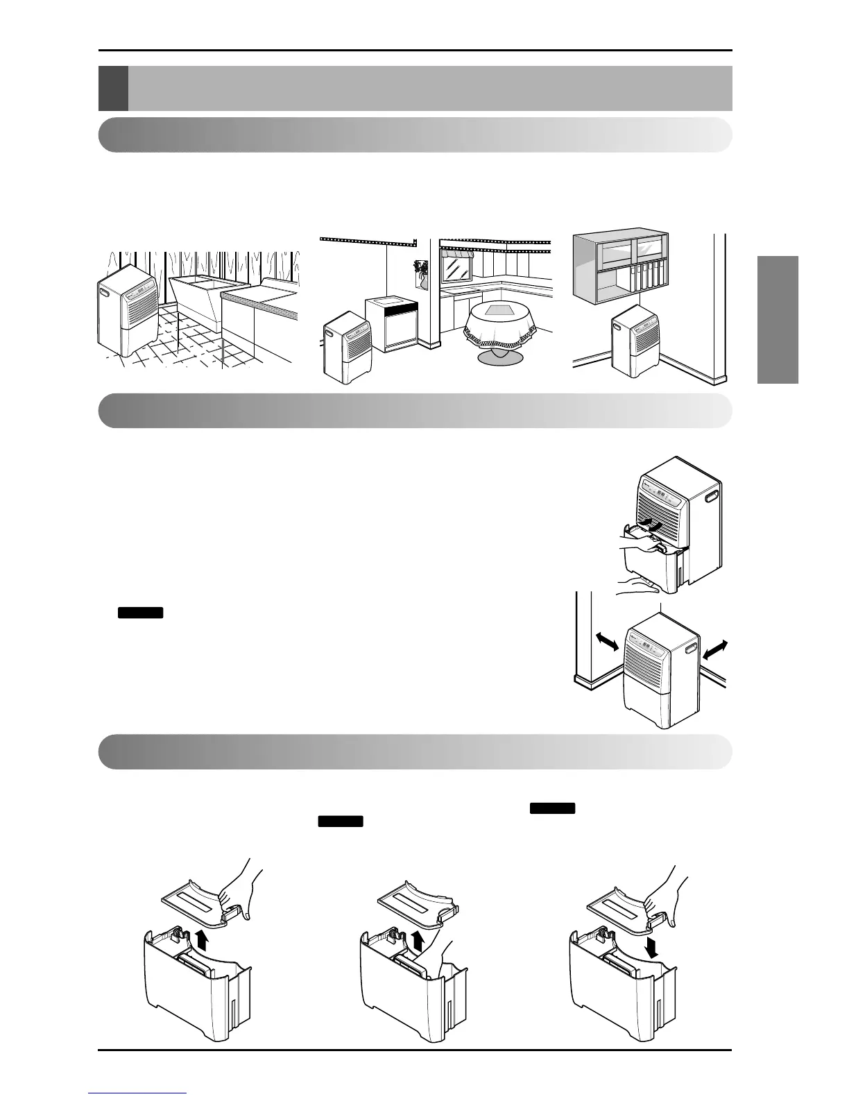 Lorsque vous installez le déshumidificateur sur une table ou sur une étagère, assurez-