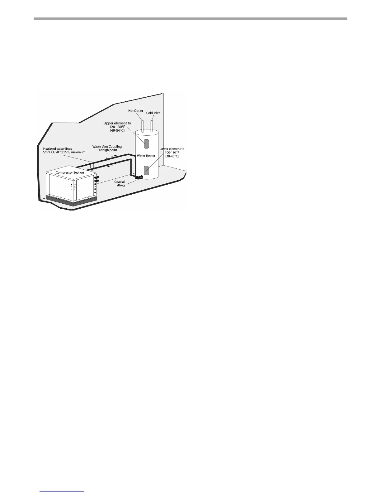 not fall below 50°F [10°C]. Keep water piping lengths at a