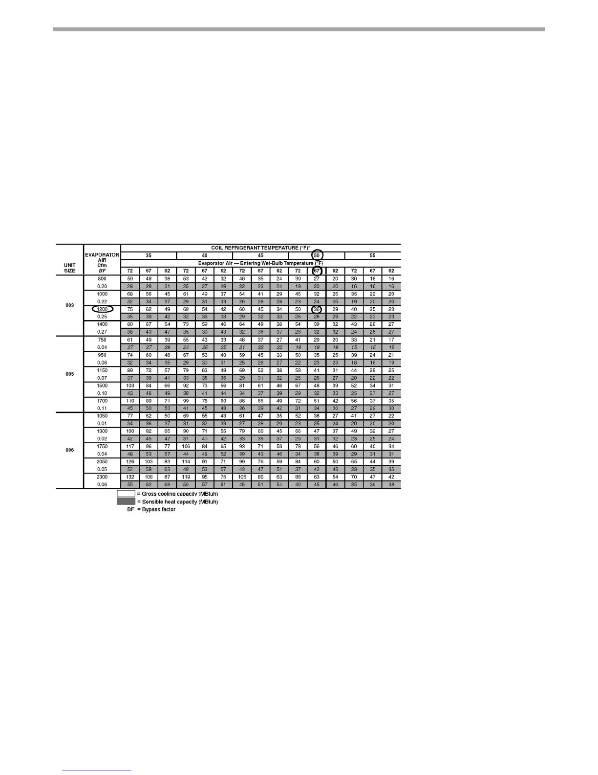 is 1,200 CFM. Each evaporator temperature listed in the table