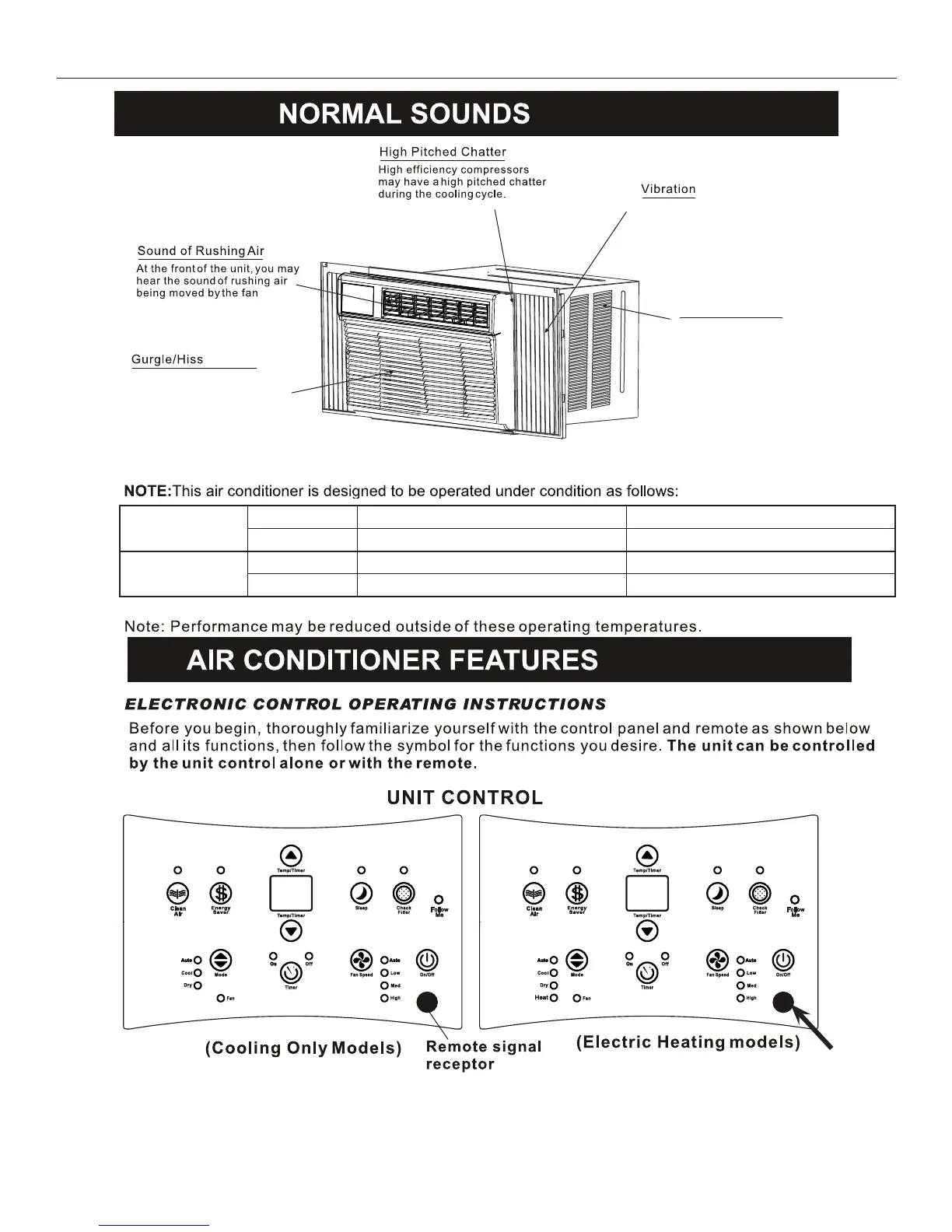 NOTE: Clear Air and/or Follow Me features only apply to certain models. Your