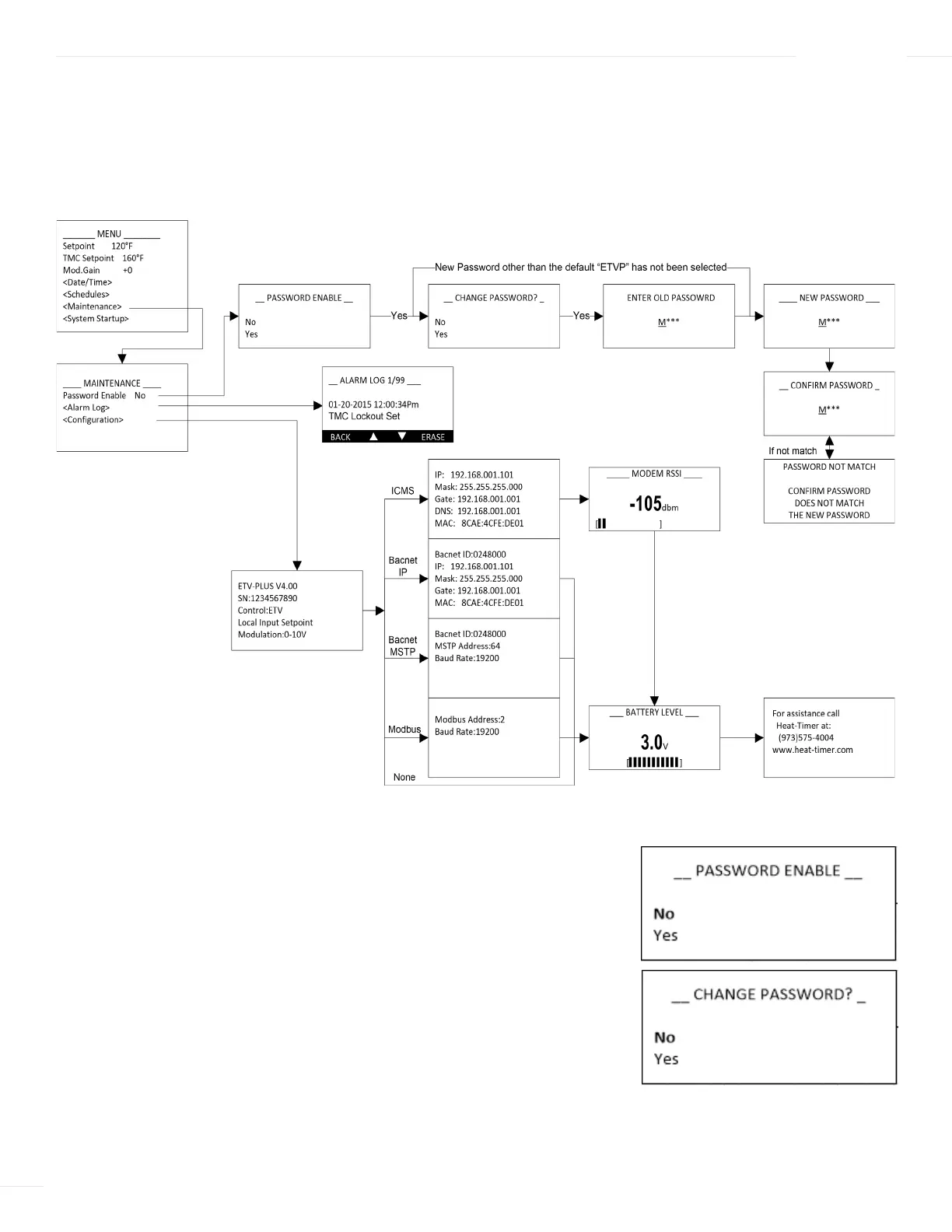 The Maintenance menu is used to modify critical system behavior and view previous alarm conditions. It should