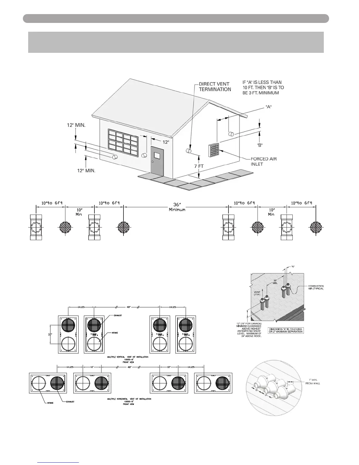 *Note: Exhaust must extend out 1 foot. There should be no more than 2 vents and 2 intakes then a space of 36” to the