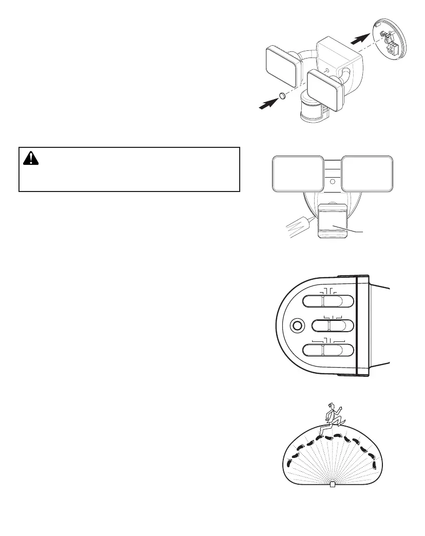 lights turn on. Also, the LED indicator behind the motion sen-