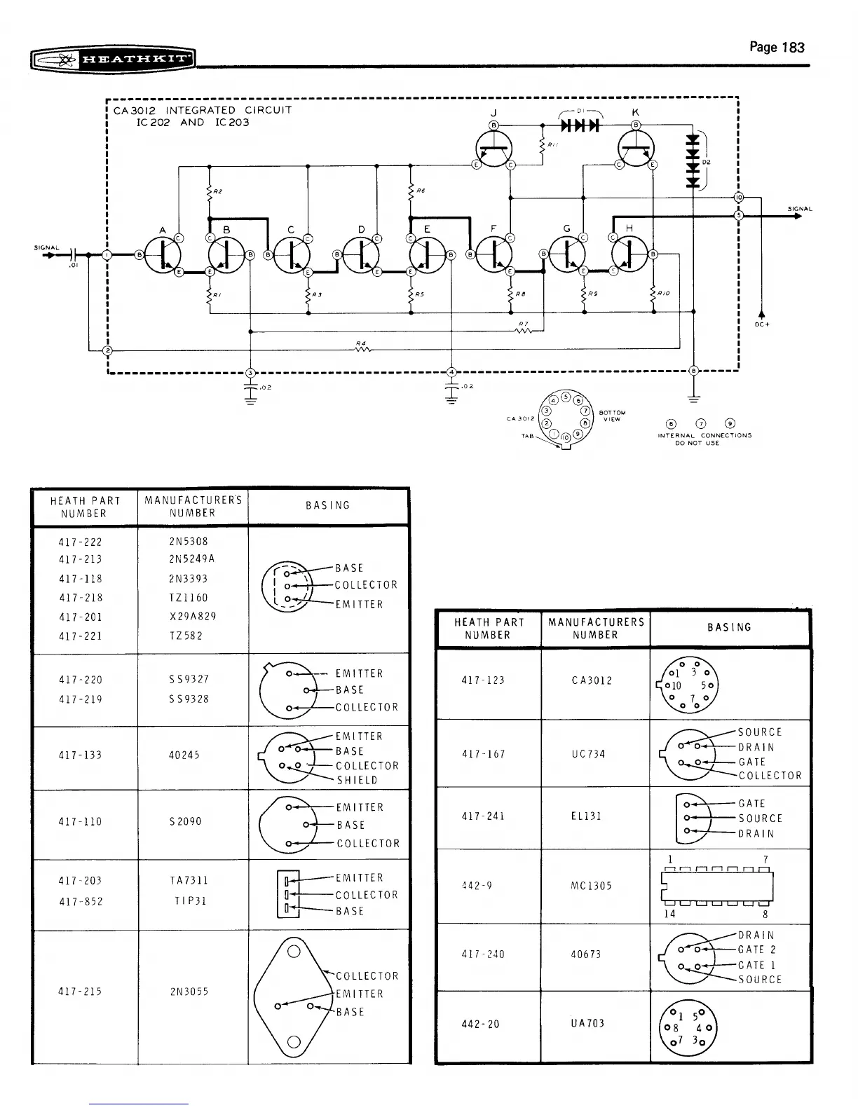 Heath Heathkit AR-29 - Integrated Circuit Component Details; CA 3012 Integrated Circuit; Transistor and IC Basings