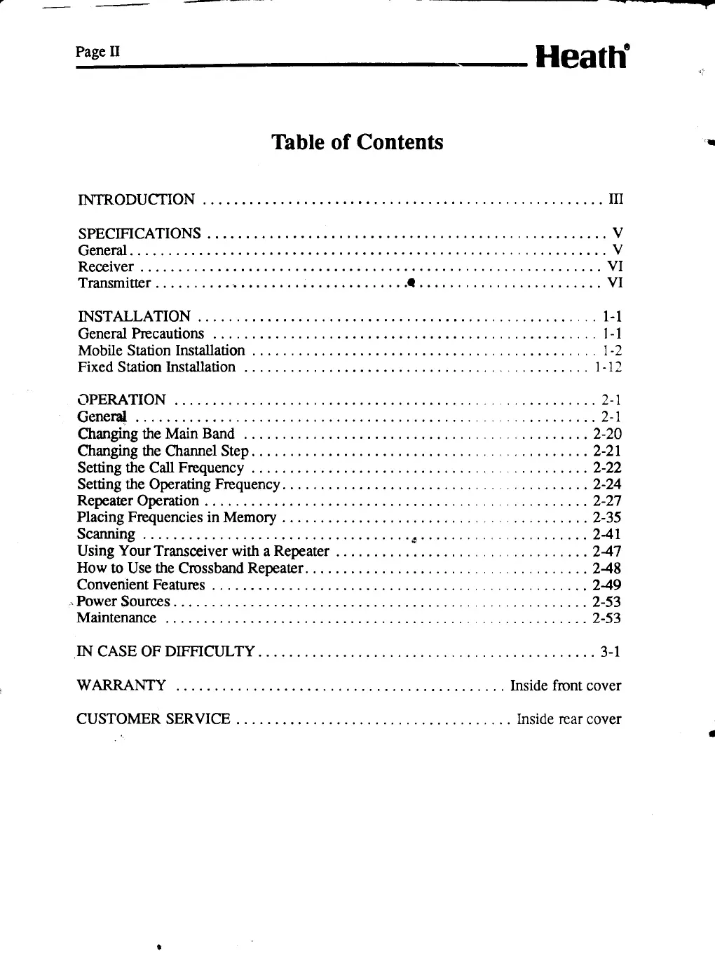 Heath HW-24 - Table of Contents