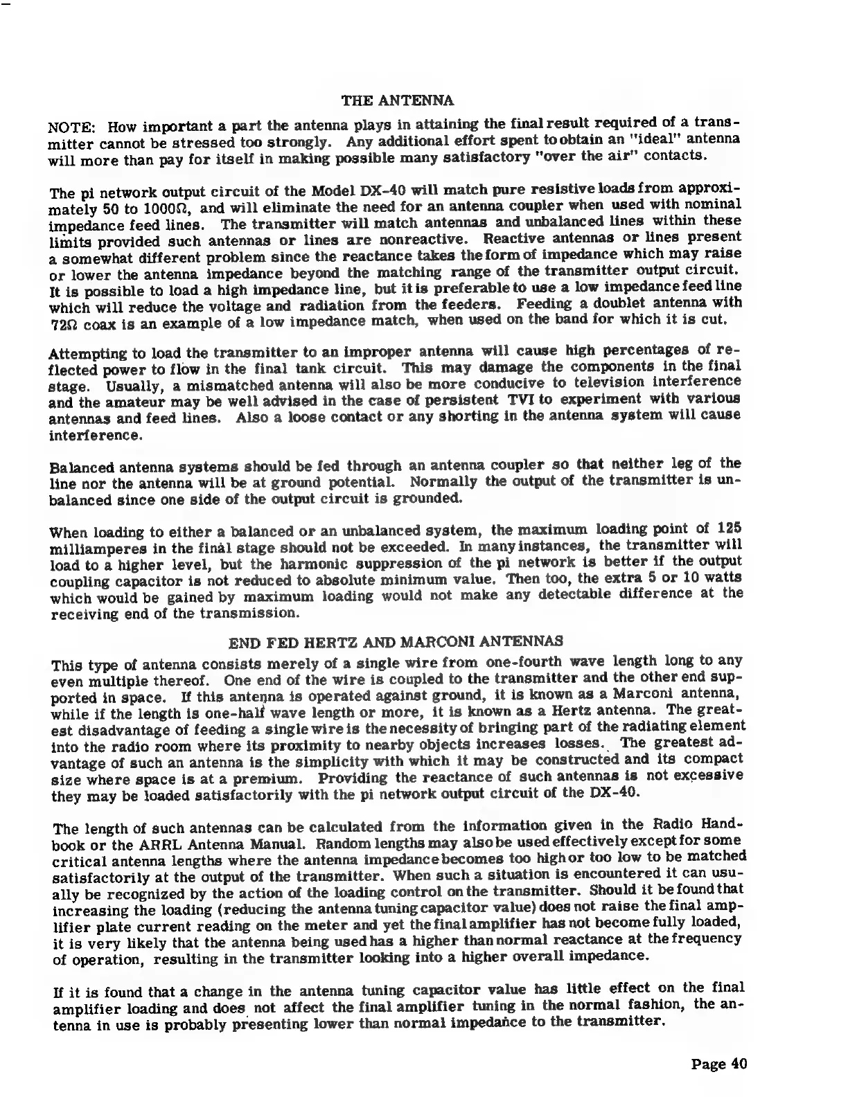 Heathkit DX-40 - THE ANTENNA SYSTEM; Antenna Matching and Loading Principles