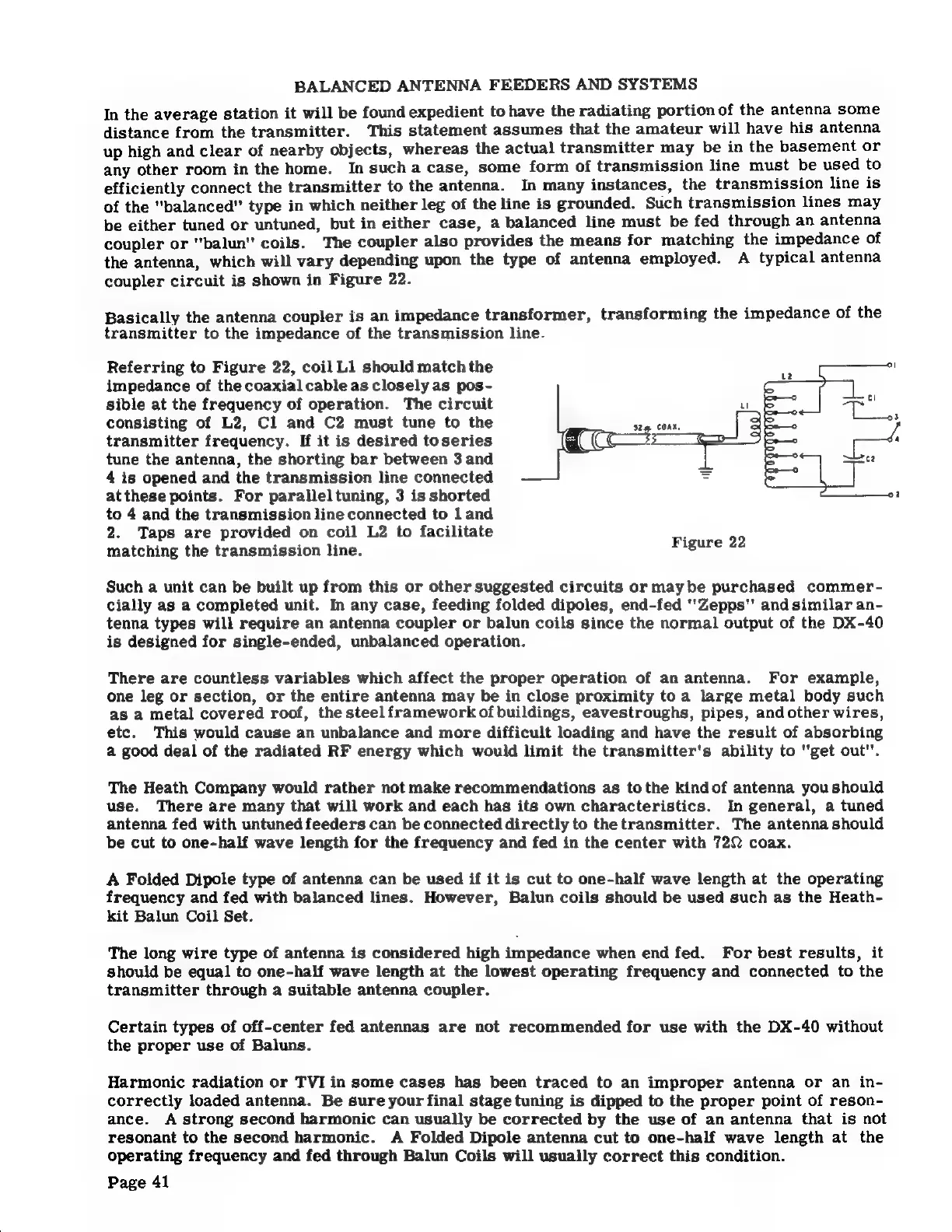 Heathkit DX-40 - BALANCED ANTENNA FEEDERS AND SYSTEMS; Antenna Couplers and Baluns Usage