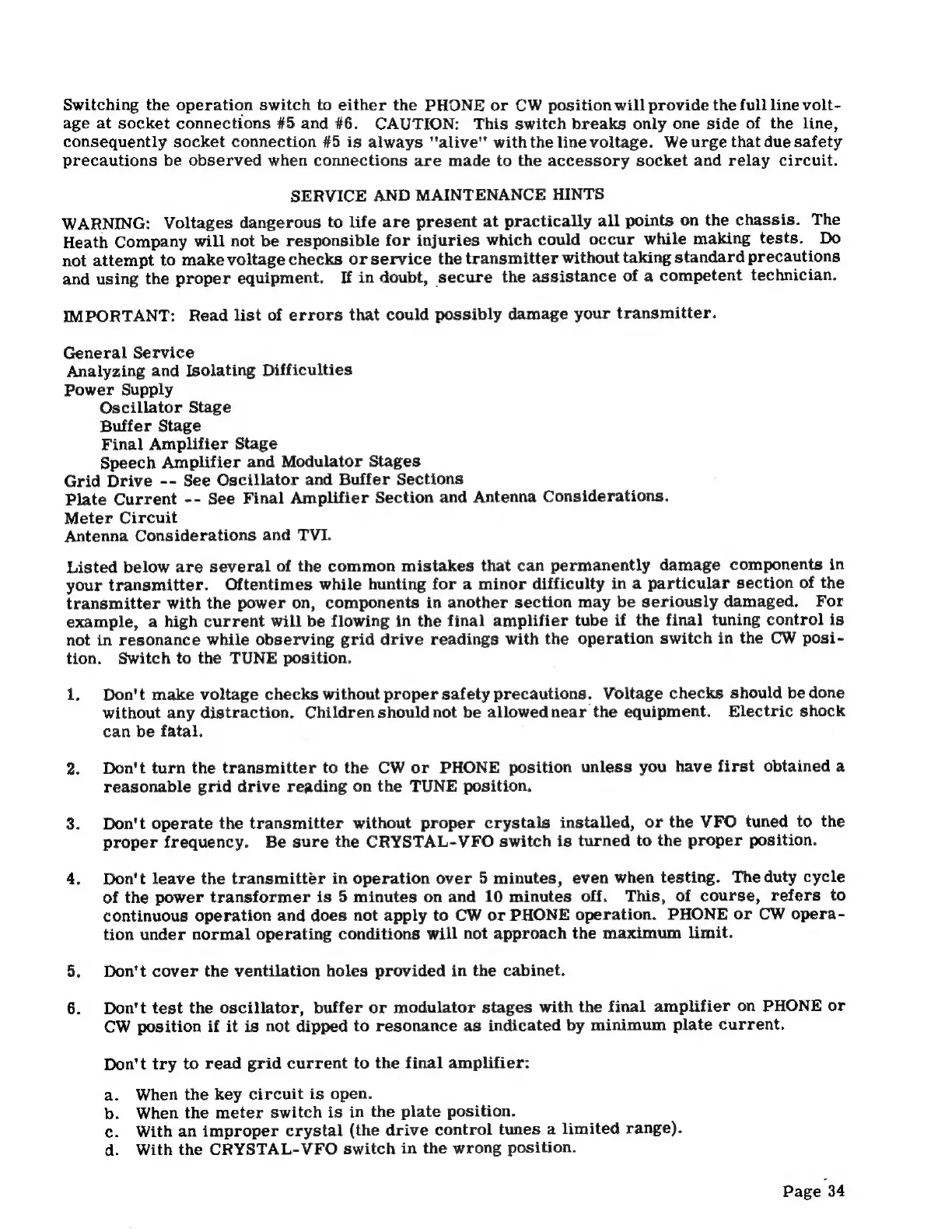 Heathkit DX-40 - SERVICE AND MAINTENANCE HINTS; Stage-Specific Fault Diagnosis; Operational Issues and Antenna Concerns