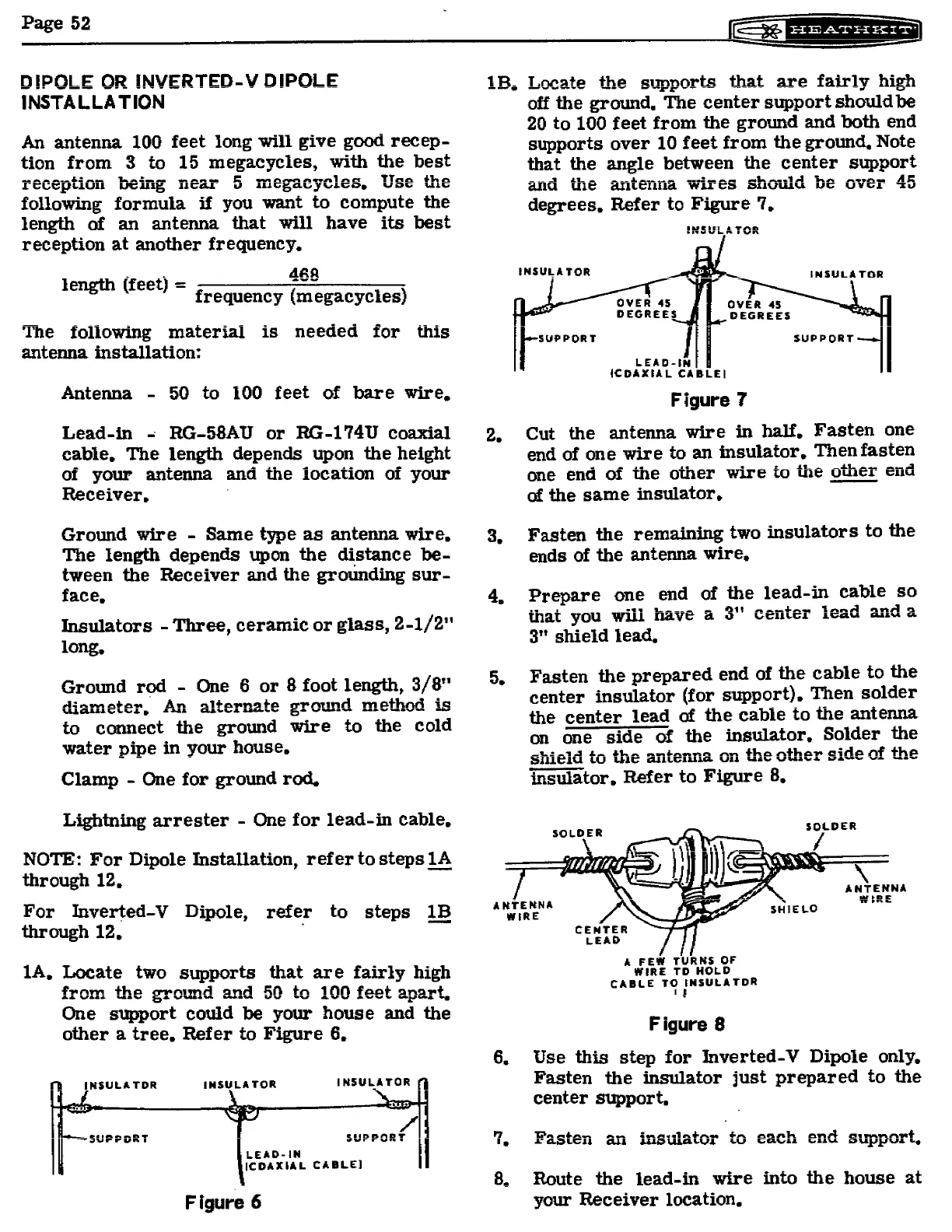 Heathkit GR-54 - Antenna Installation (Continued); Dipole Installation Guide