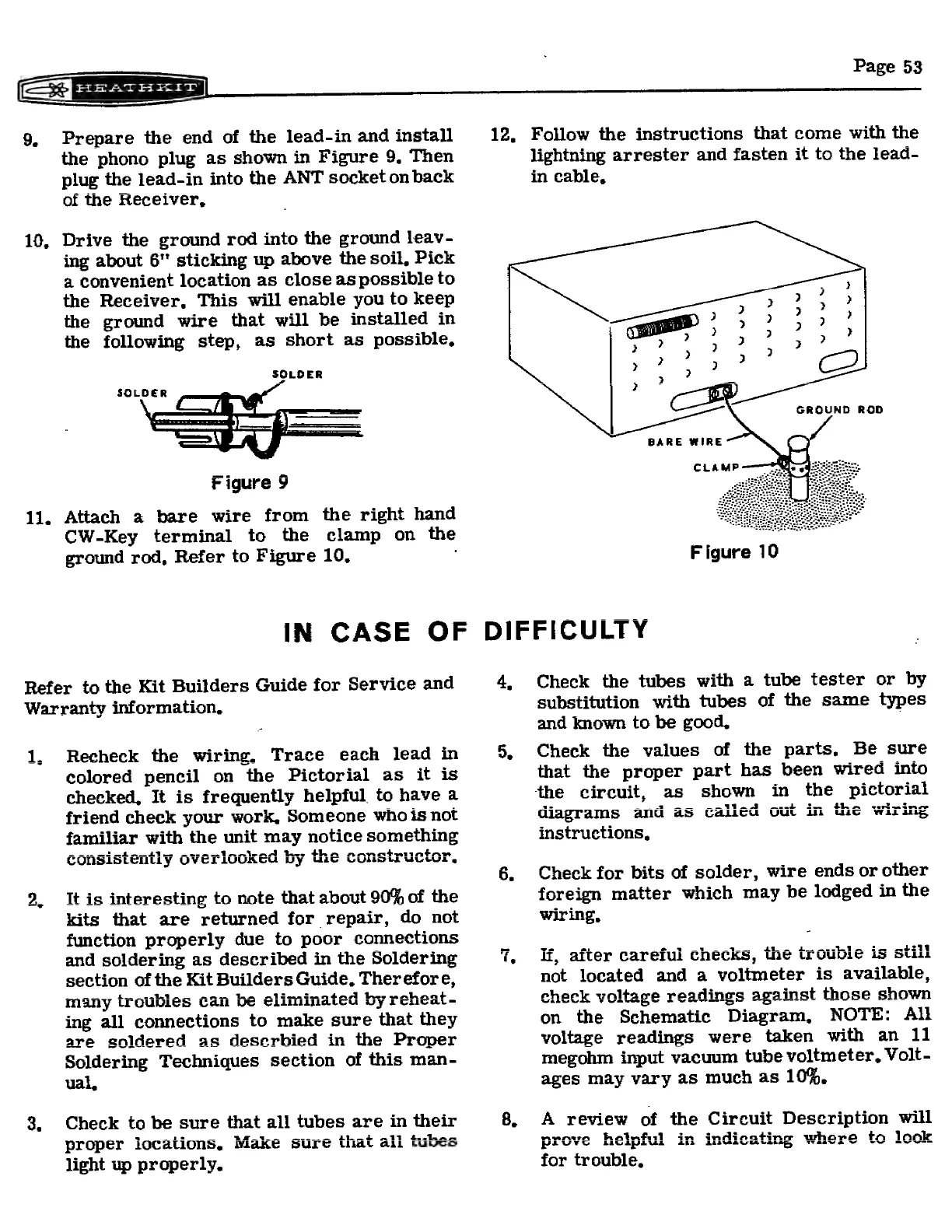 Heathkit GR-54 - In Case of Difficulty; Wiring and Soldering Checks; Component and Tube Verification