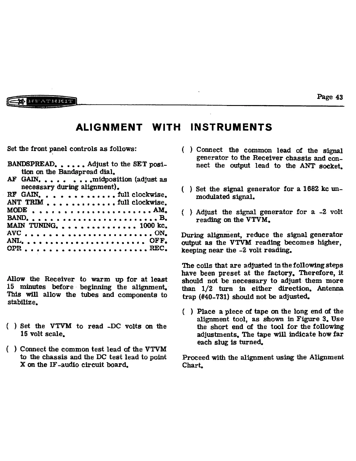 Heathkit GR-54 - Alignment With Instruments; Instrument Setup; Alignment Steps