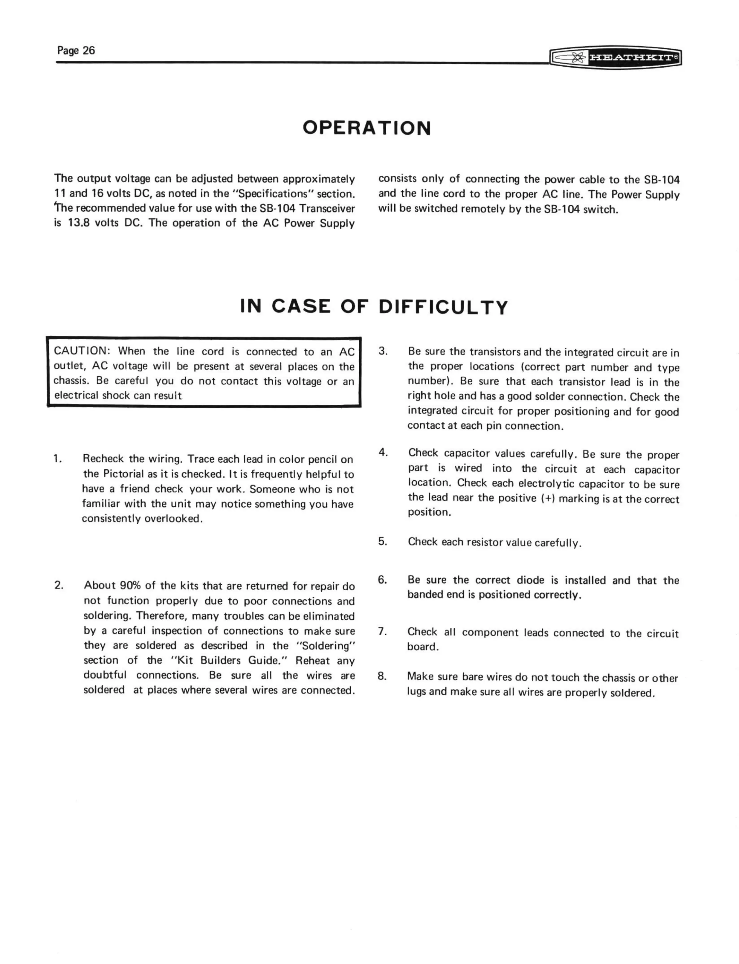 Heathkit HP-1144 - Operation and Troubleshooting Guide; Operation; In Case of Difficulty