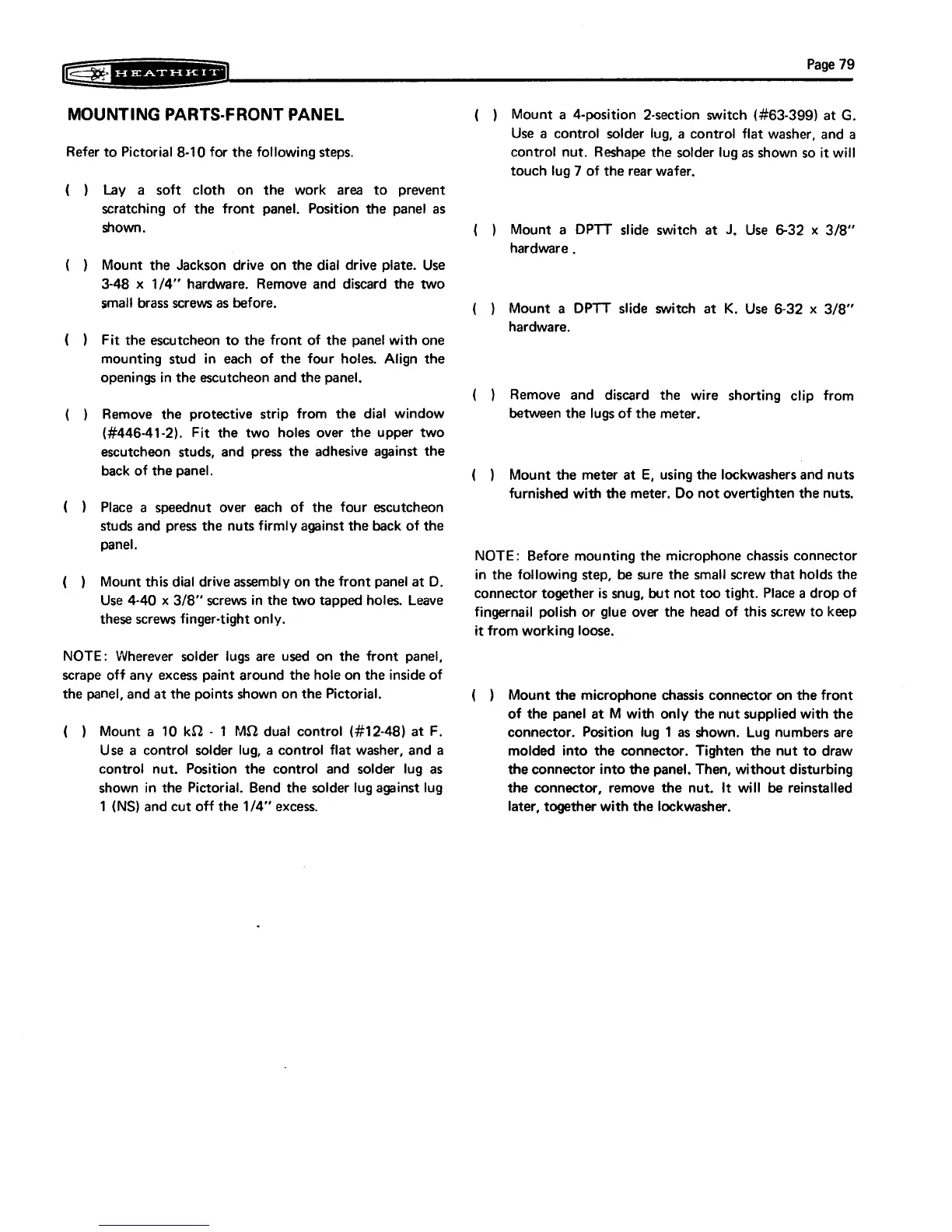 Heathkit HW-101 - Mounting Parts-Front Panel
