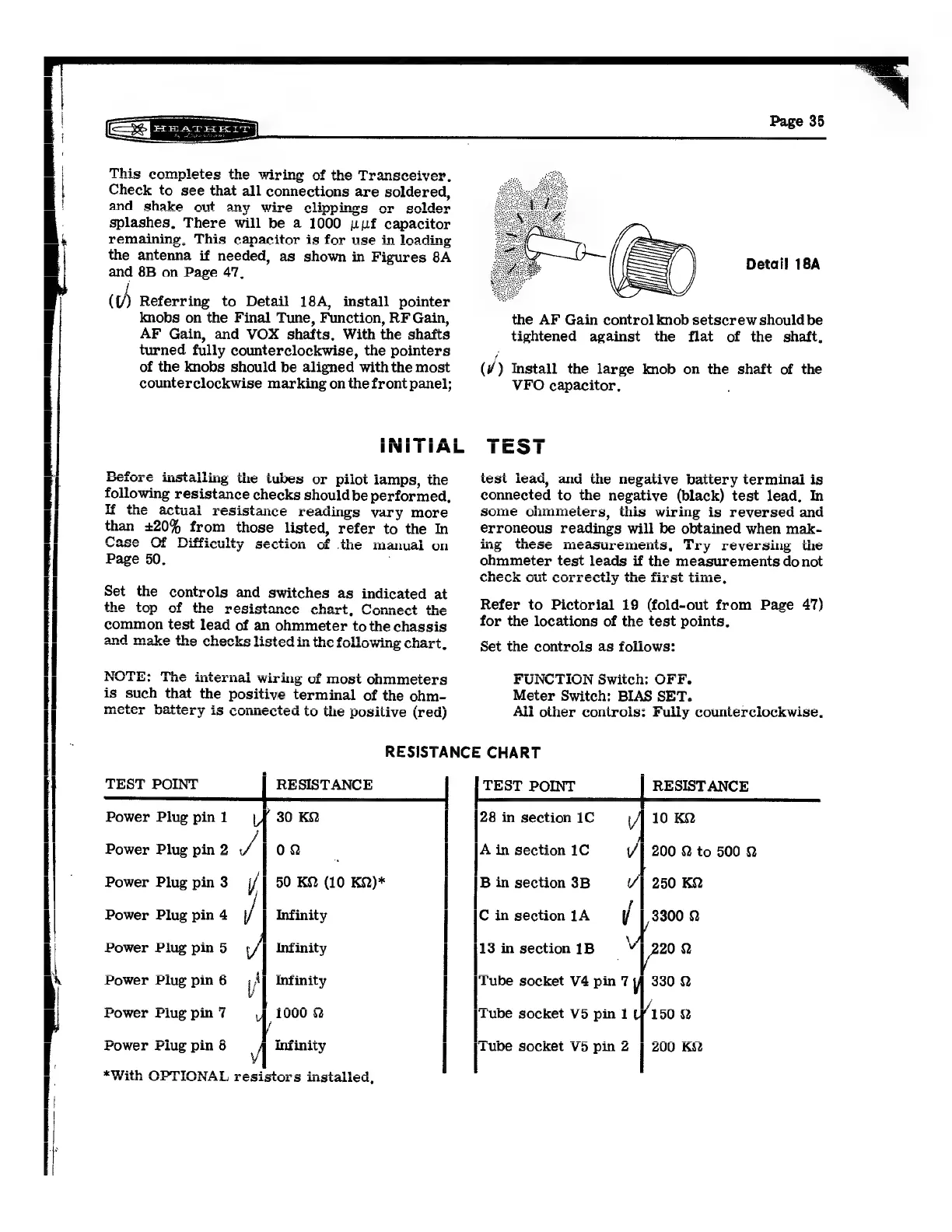 Heathkit HW-12 - Resistance Chart