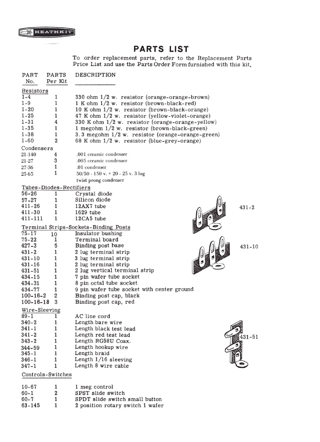 Heathkit IT-12 - Heathkit Signal Tracer Parts List