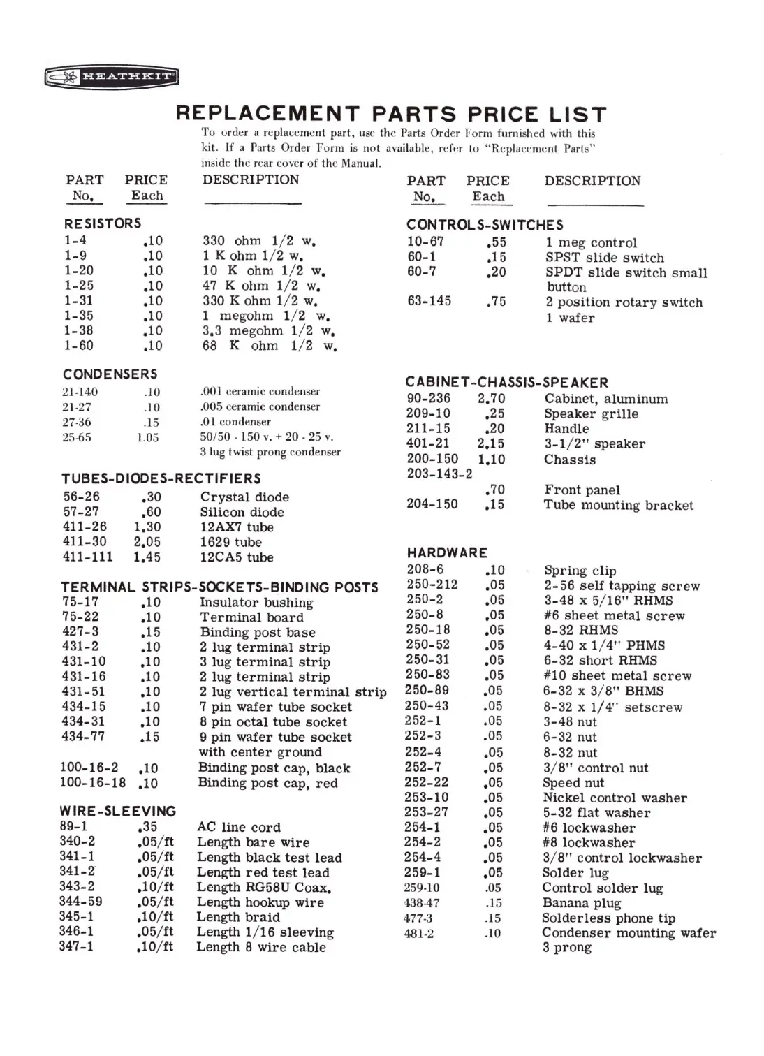Heathkit IT-12 - Heathkit Service and Support; Replacement Parts; Technical Consultation; Repair Service