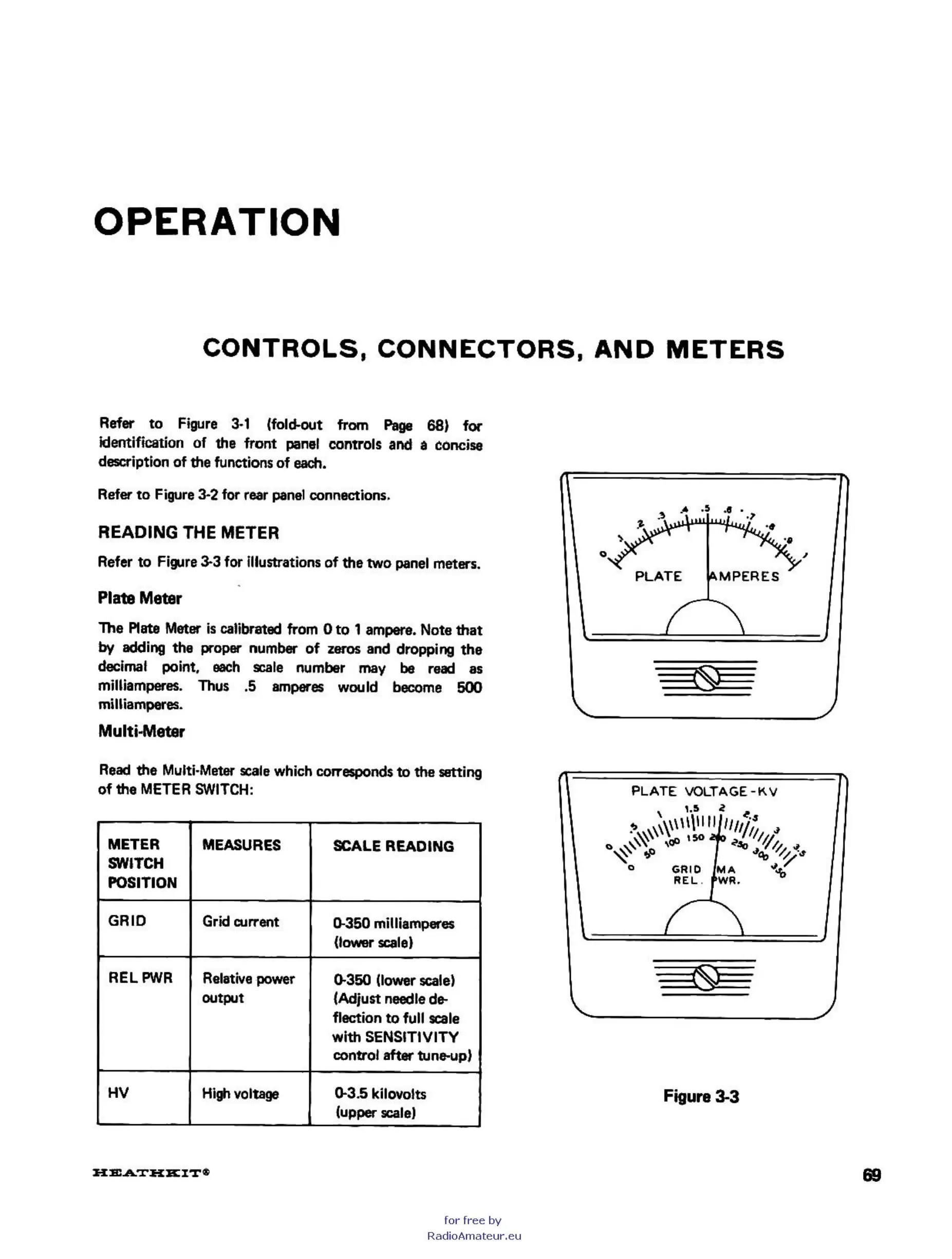 Heathkit SB-220 - Operation; Controls, Connectors, and Meters; Reading the Meter; Multi Meter