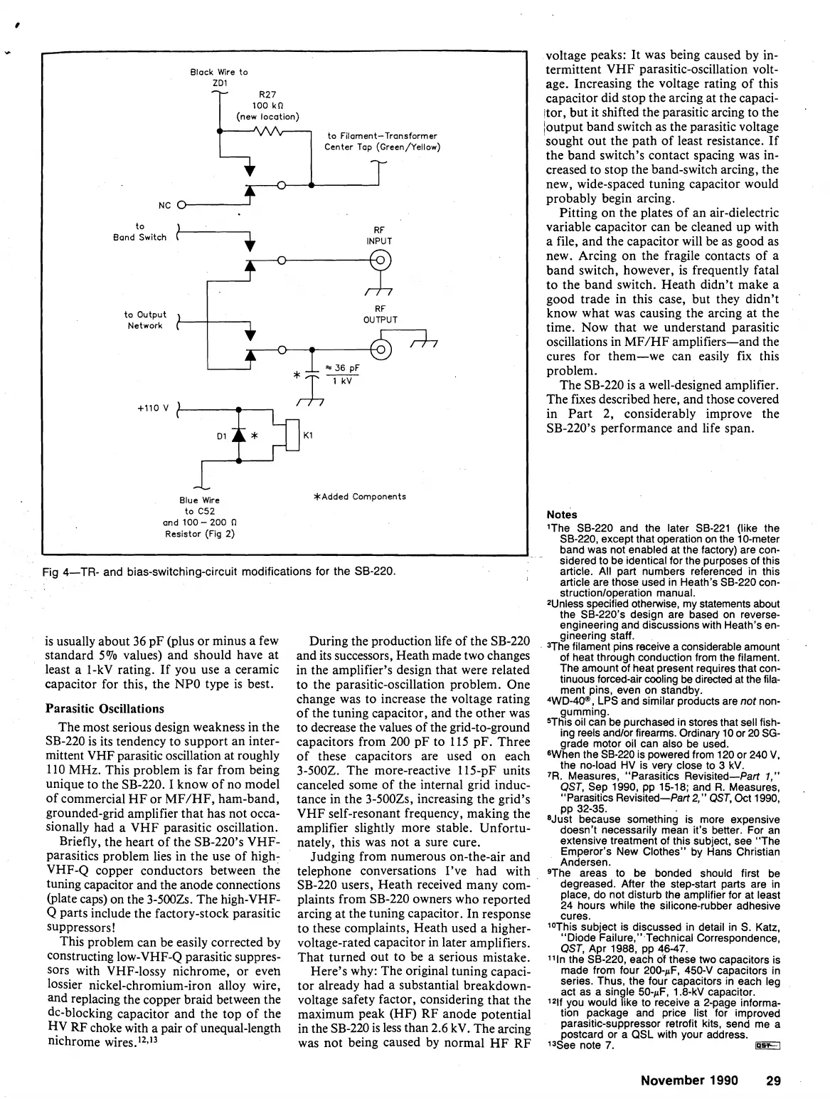 Fig 4-TR- and bias-switching-circuit modifications for the SB-220.