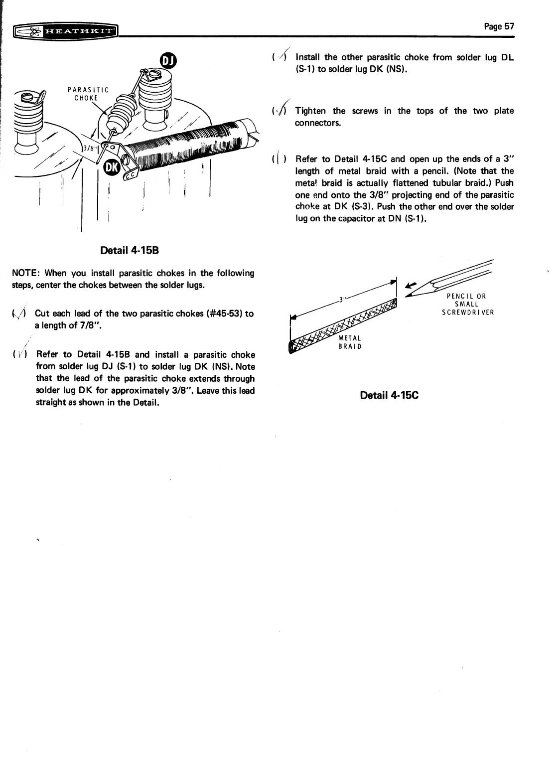 choke at DK (S-3). Push the other end over the solder