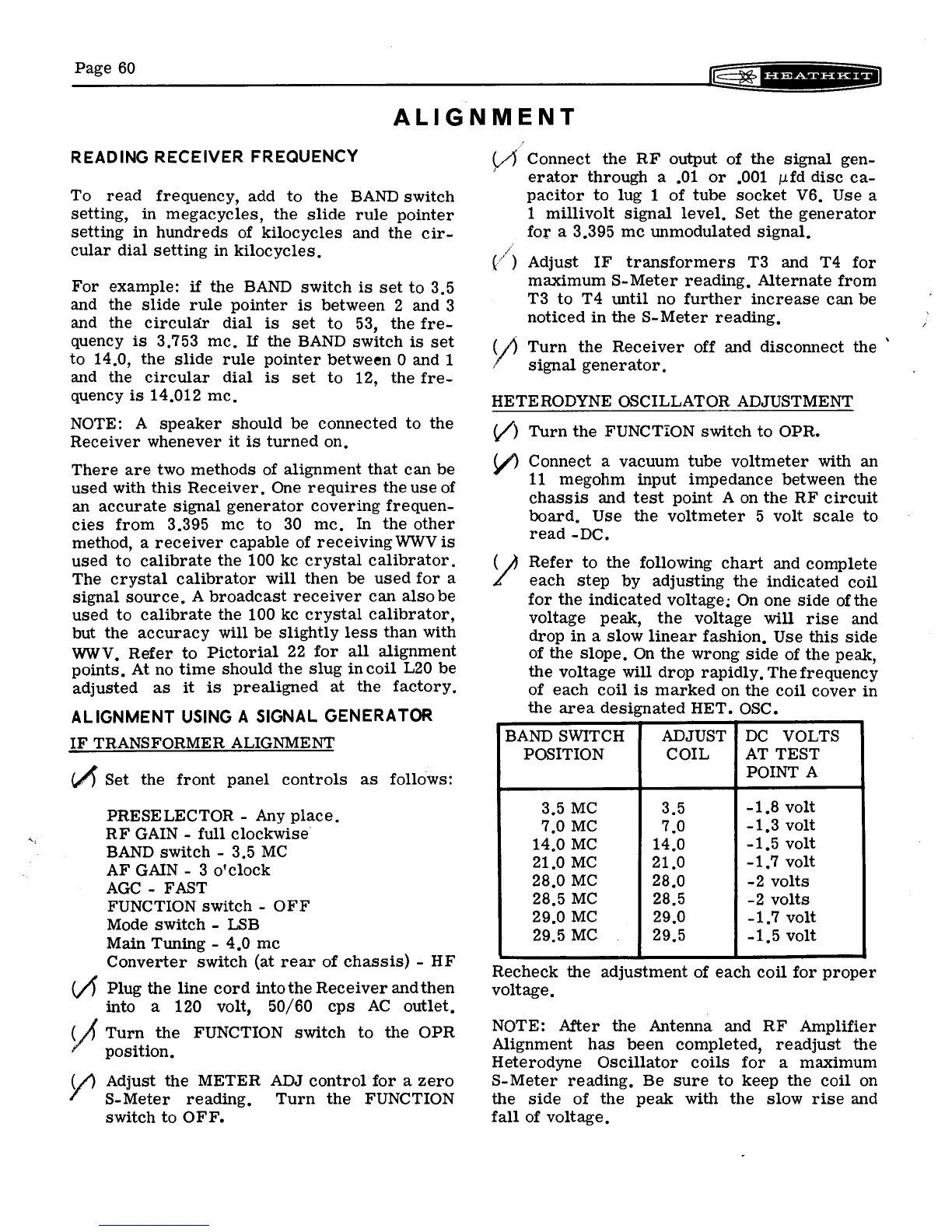 Heathkit SB-300 - ALIGNMENT; Reading Receiver Frequency