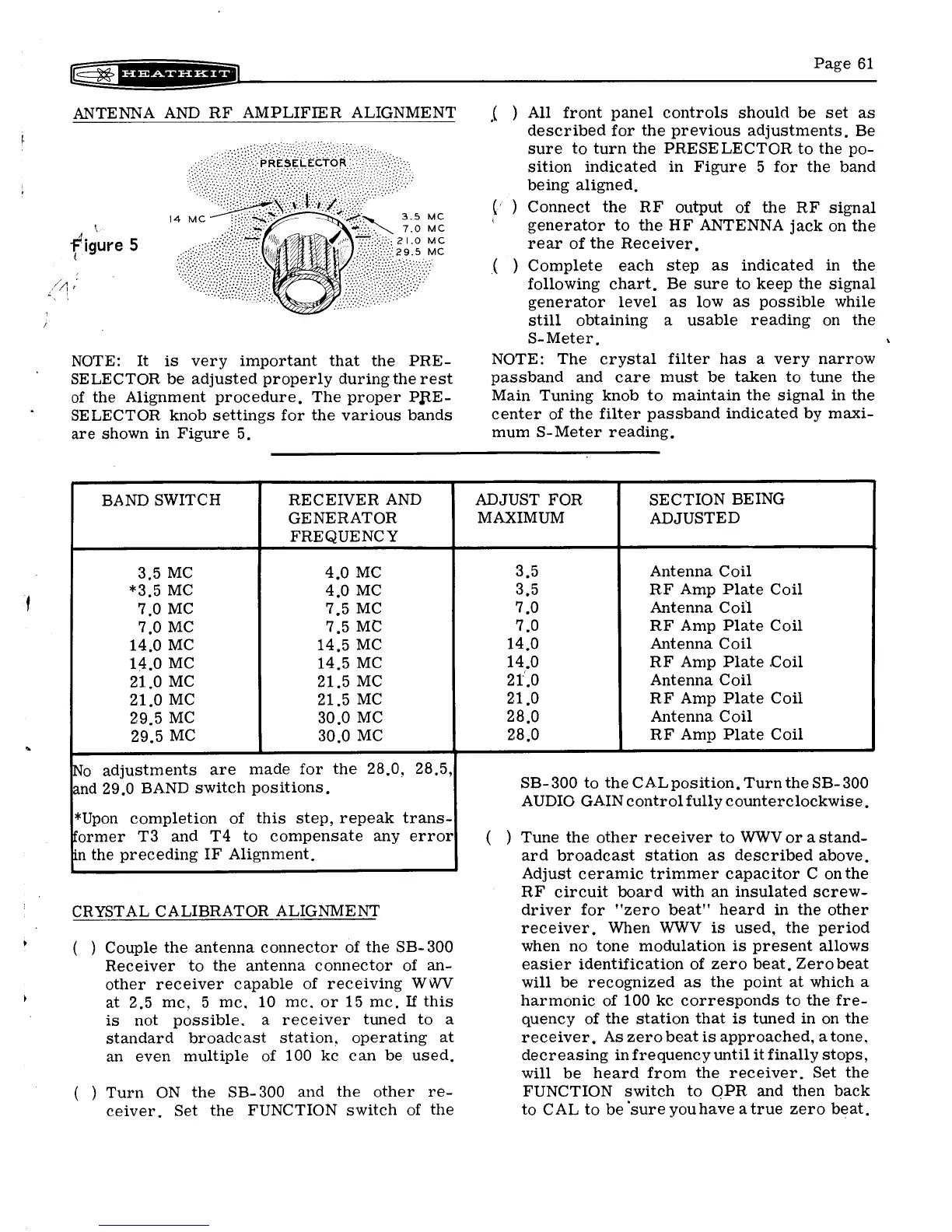 Heathkit SB-300 - IF Transformer Alignment; Antenna and RF Amplifier Alignment