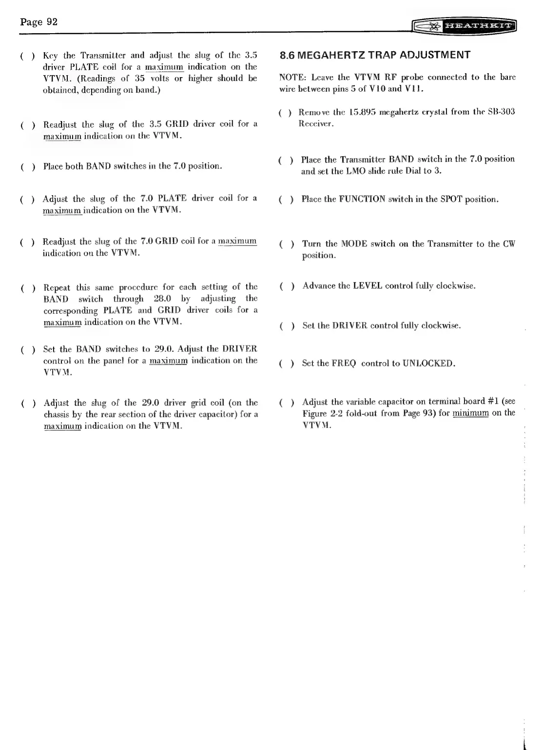 Heathkit SB-401 - 8.6 MEGAHERTZ TRAP ADJUSTMENT; CARRIER GENERATOR