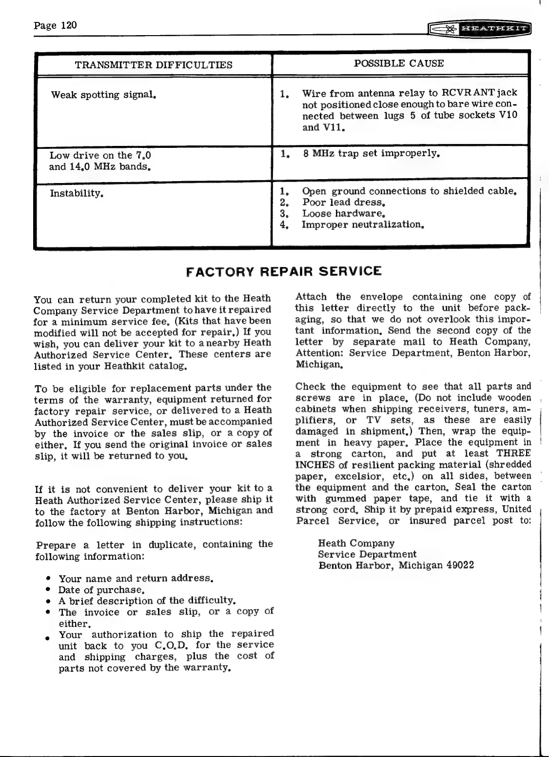 Heathkit SB-401 - FACTORY REPAIR SERVICE
