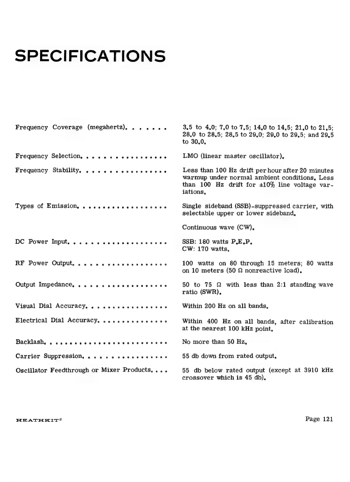 Heathkit SB-401 - SPECIFICATIONS