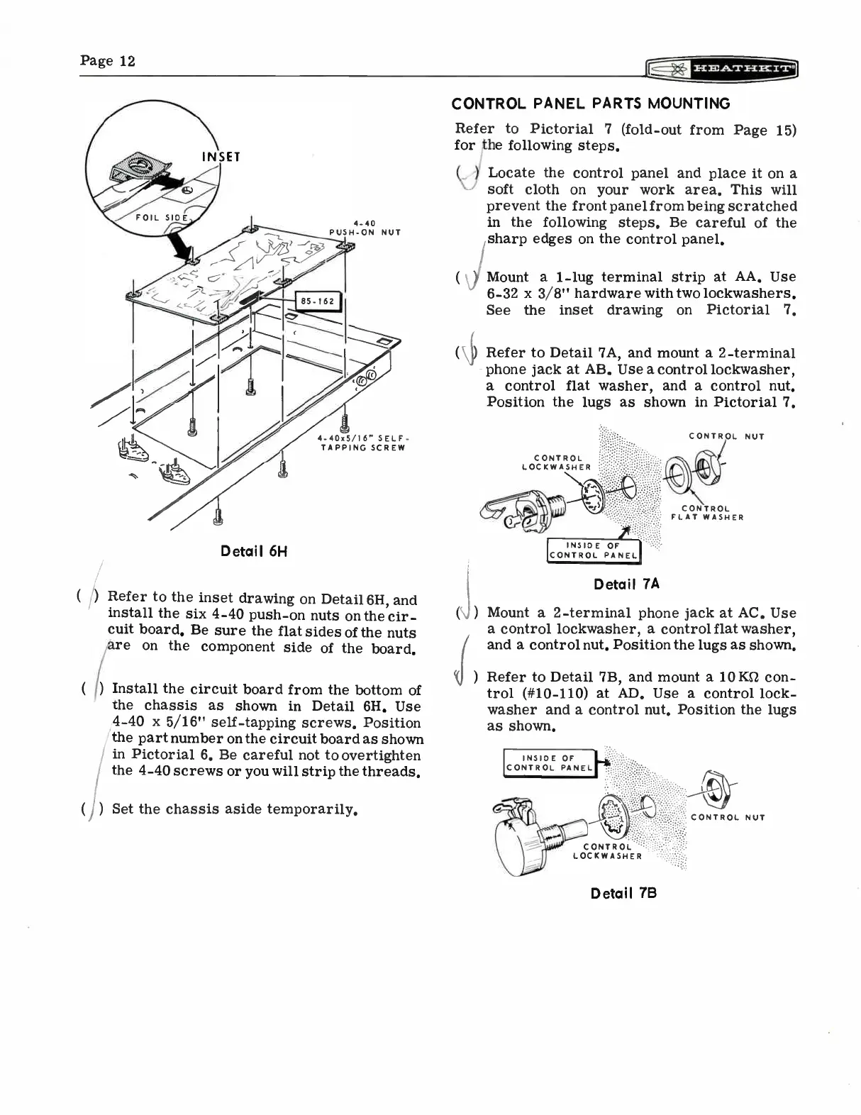 Heathkit TA-16 - Control Panel Parts Mounting