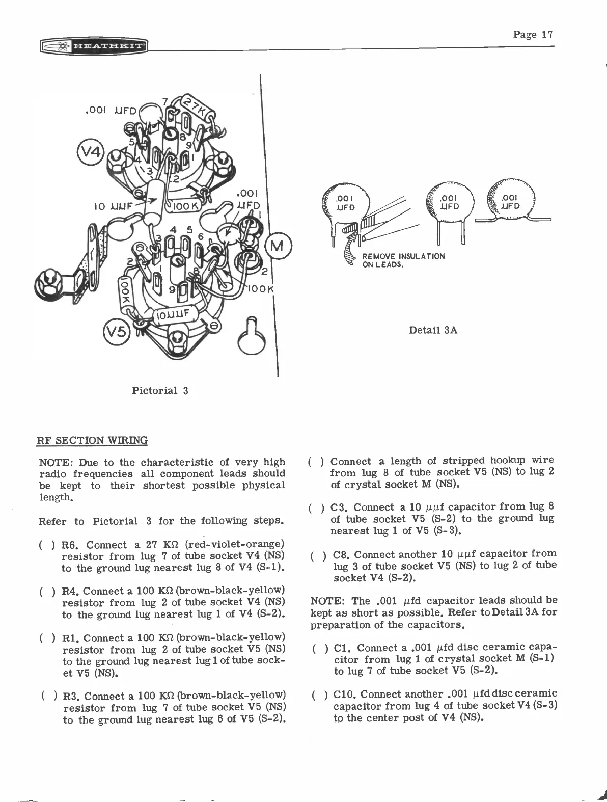 NOTE: The .001 µfd capacitor leads should be