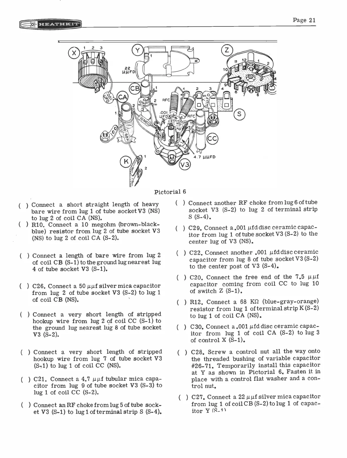 ) C21. Connect a 4.7 litif tubular mica capa-