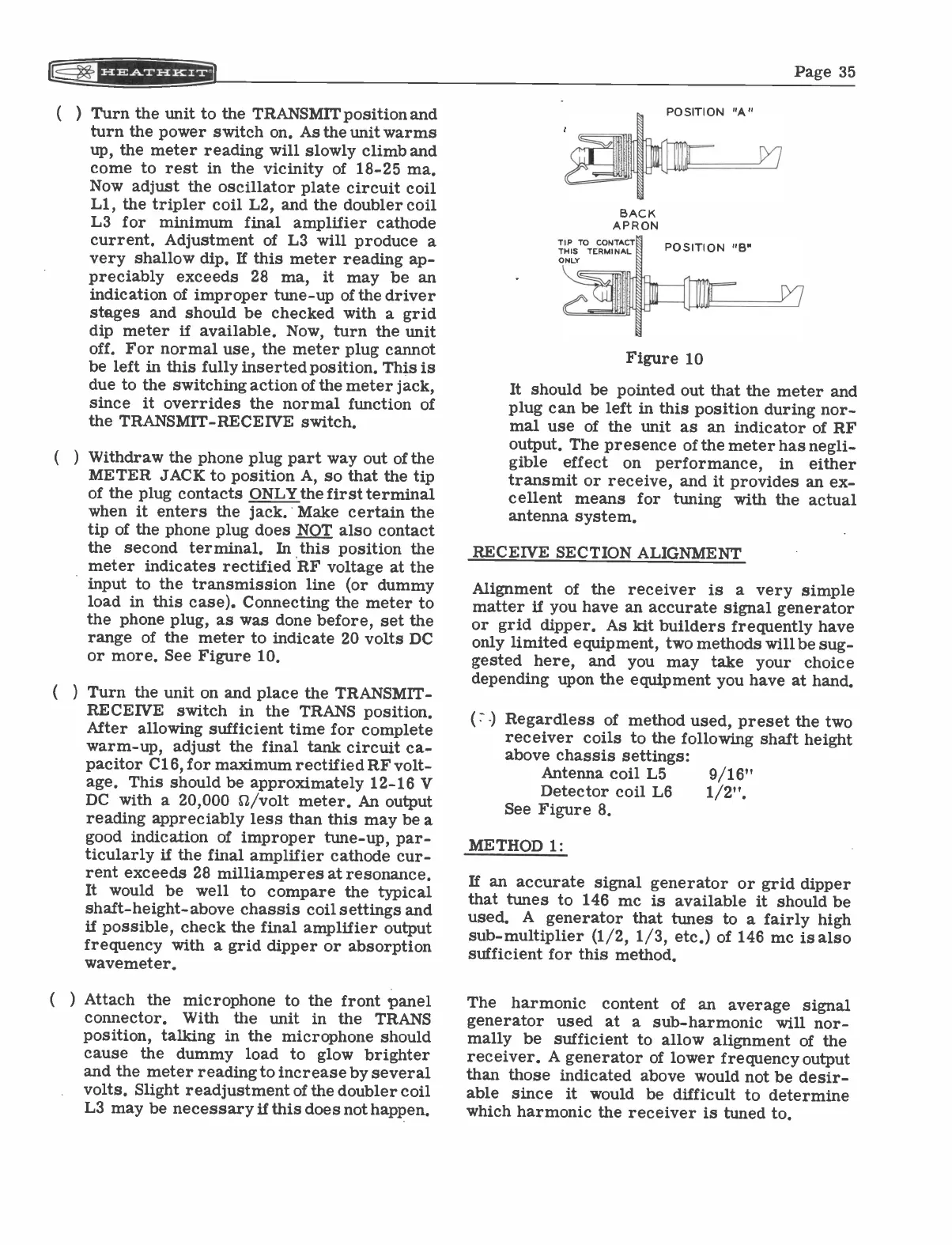 METER JACK to position A, so that the tip