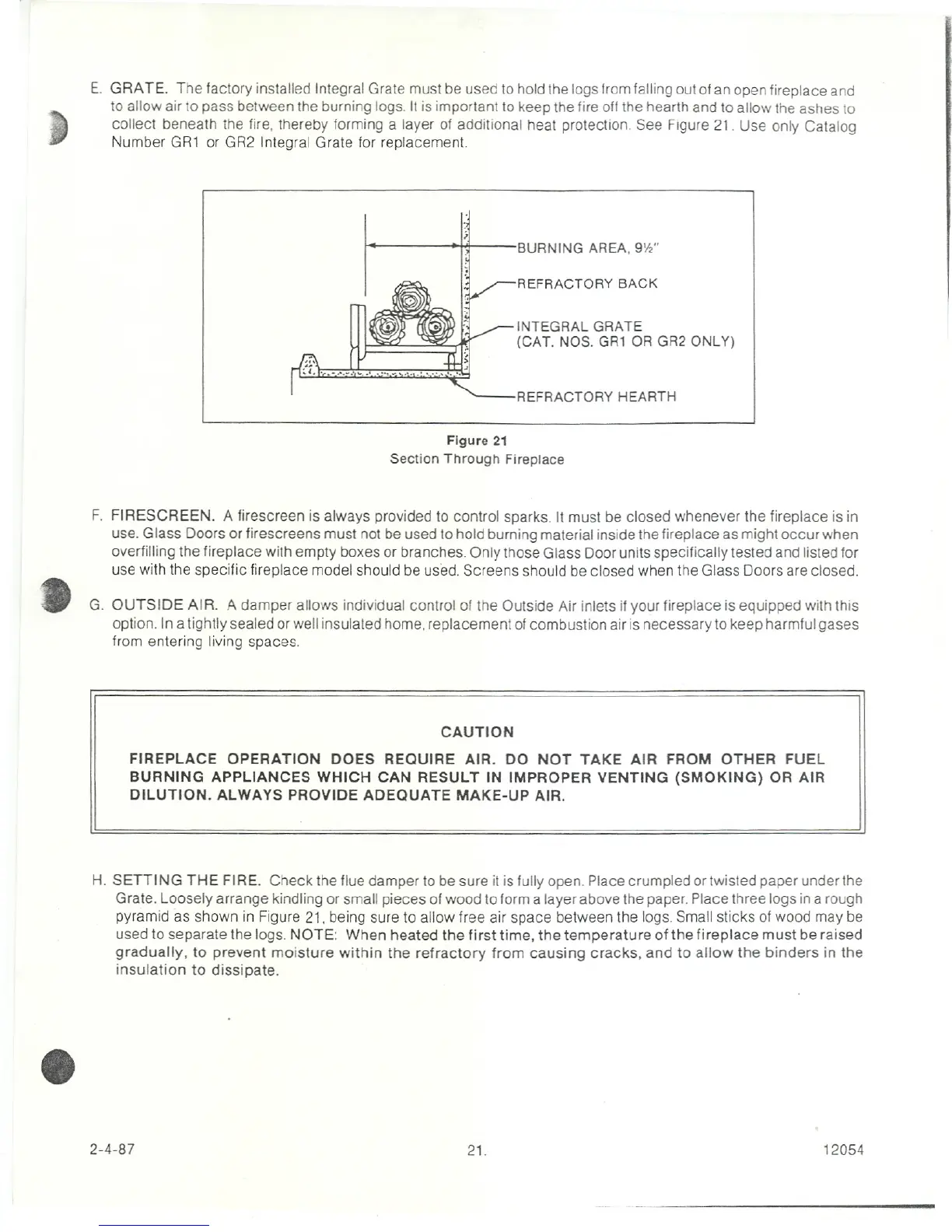 Heatiator HD36B - Grate; Firescreen; Outside Air; Setting the Fire