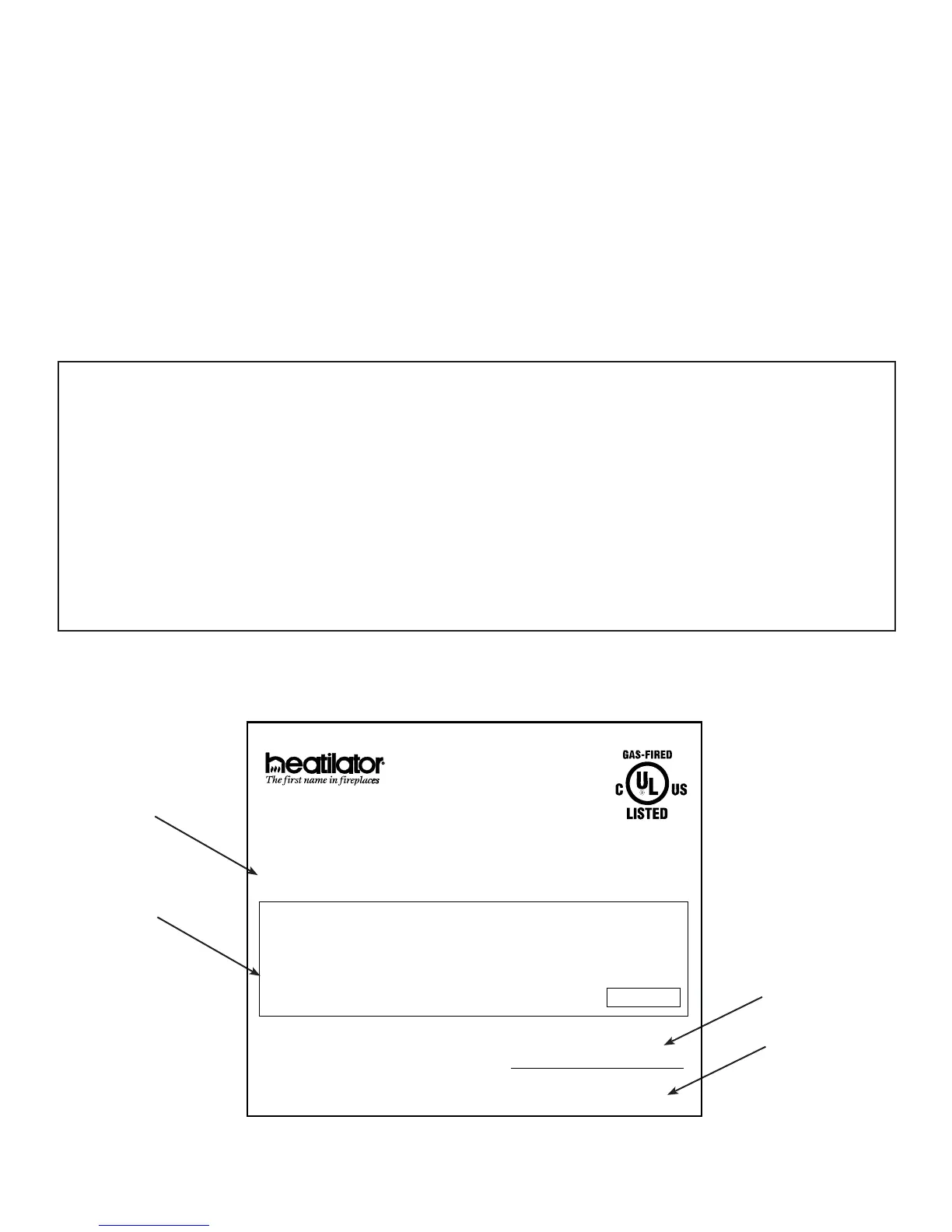 Serial Number: __________________________________________ Location on fi replace: _____________________